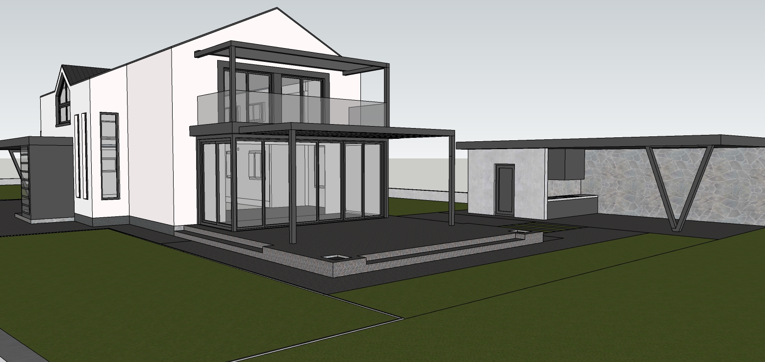 add little trees and bushes in front of terace