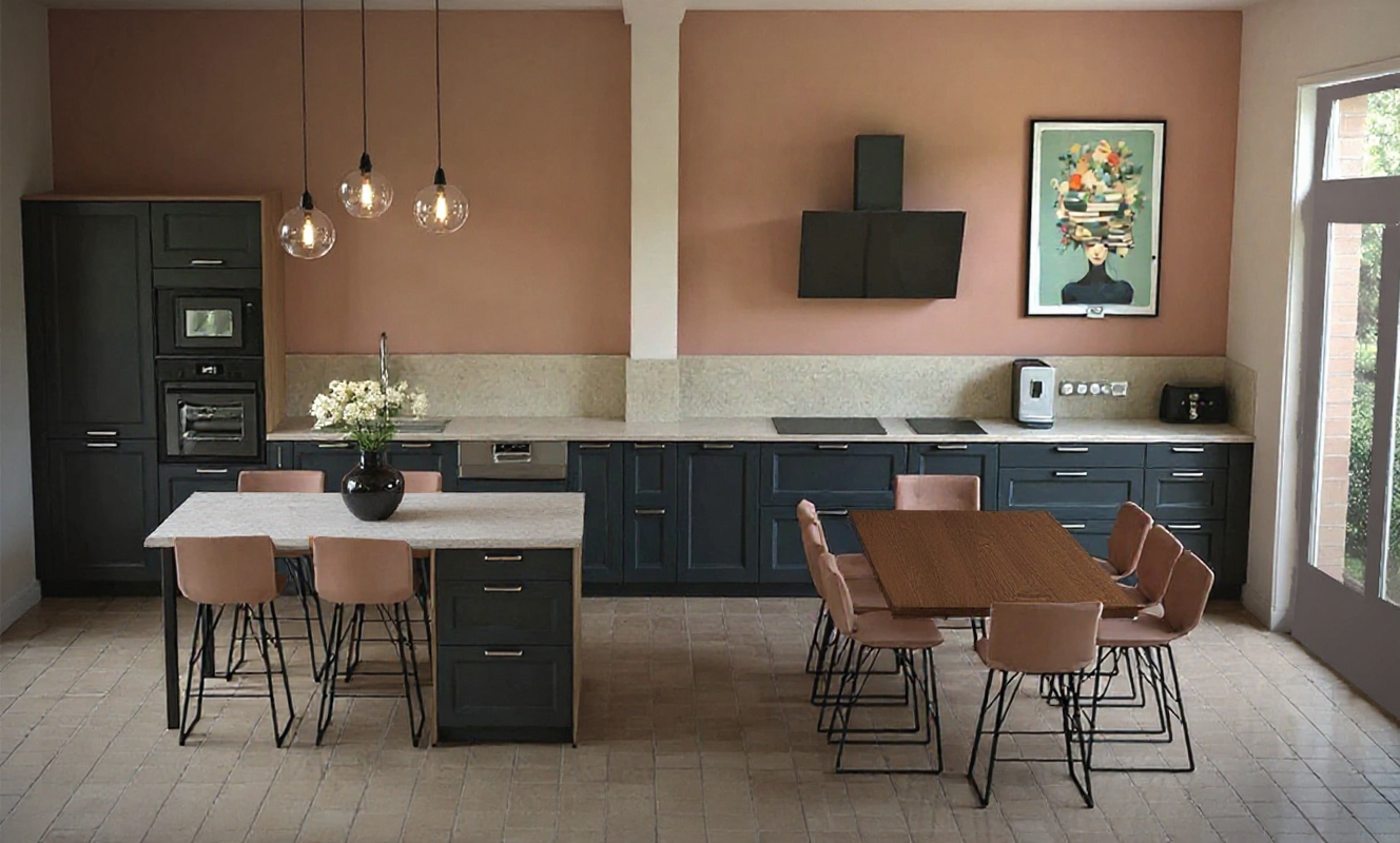 table ch ne clair vase avec des roses sur la table en bois ilot pierre beige