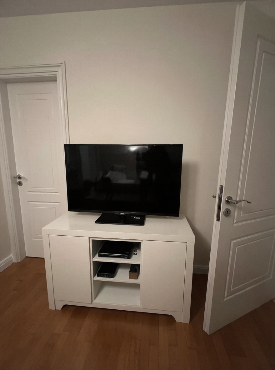 a modern laundry door made of warm natural wood matching the texture of the reference image the walls and floor are finished in smooth microcement microbeton creating a seamless minimalist surface integrated wooden slatted doors