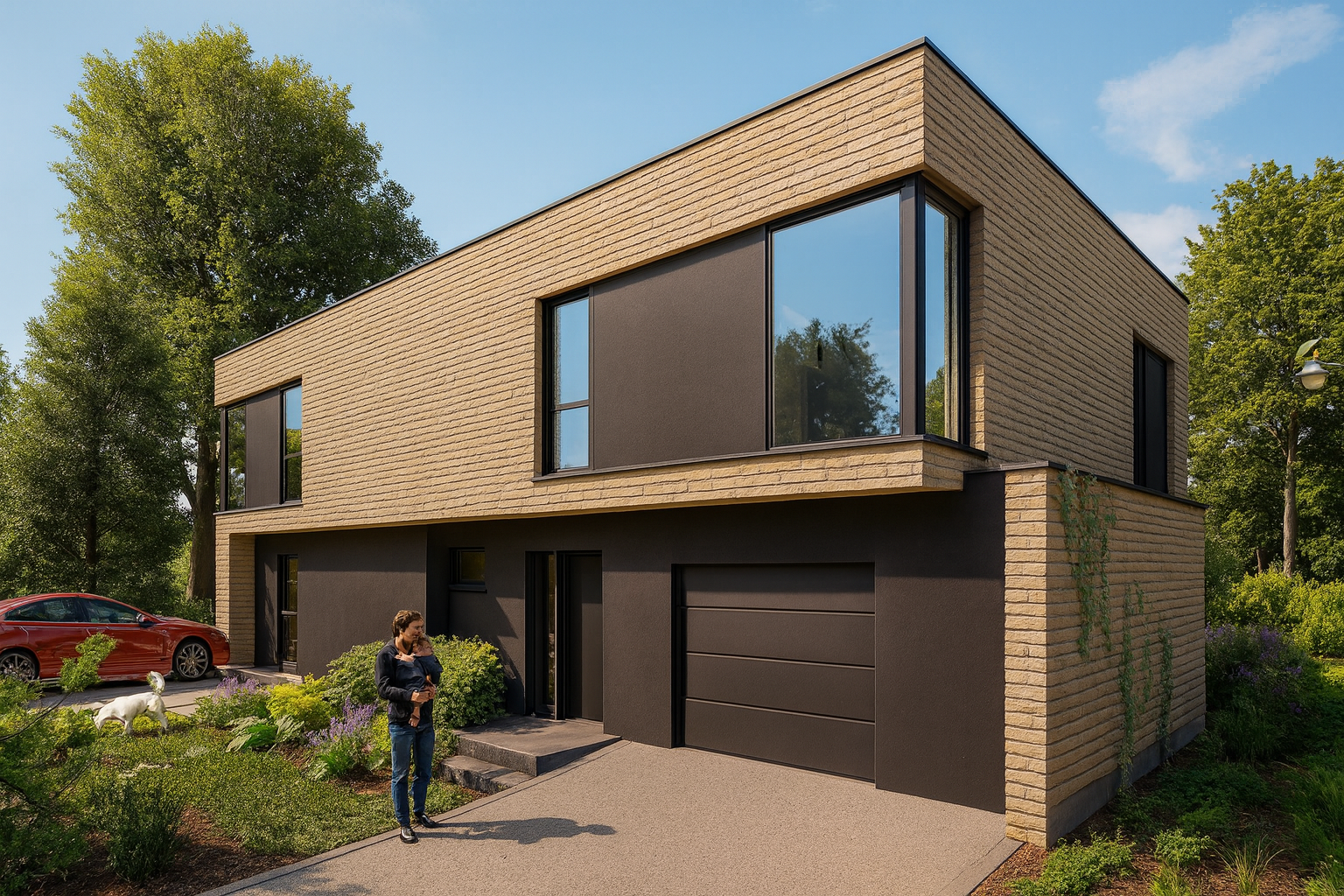 exterior shot na elewacji p ytki klinkierowe typu long w kolorze piaskowym architecture