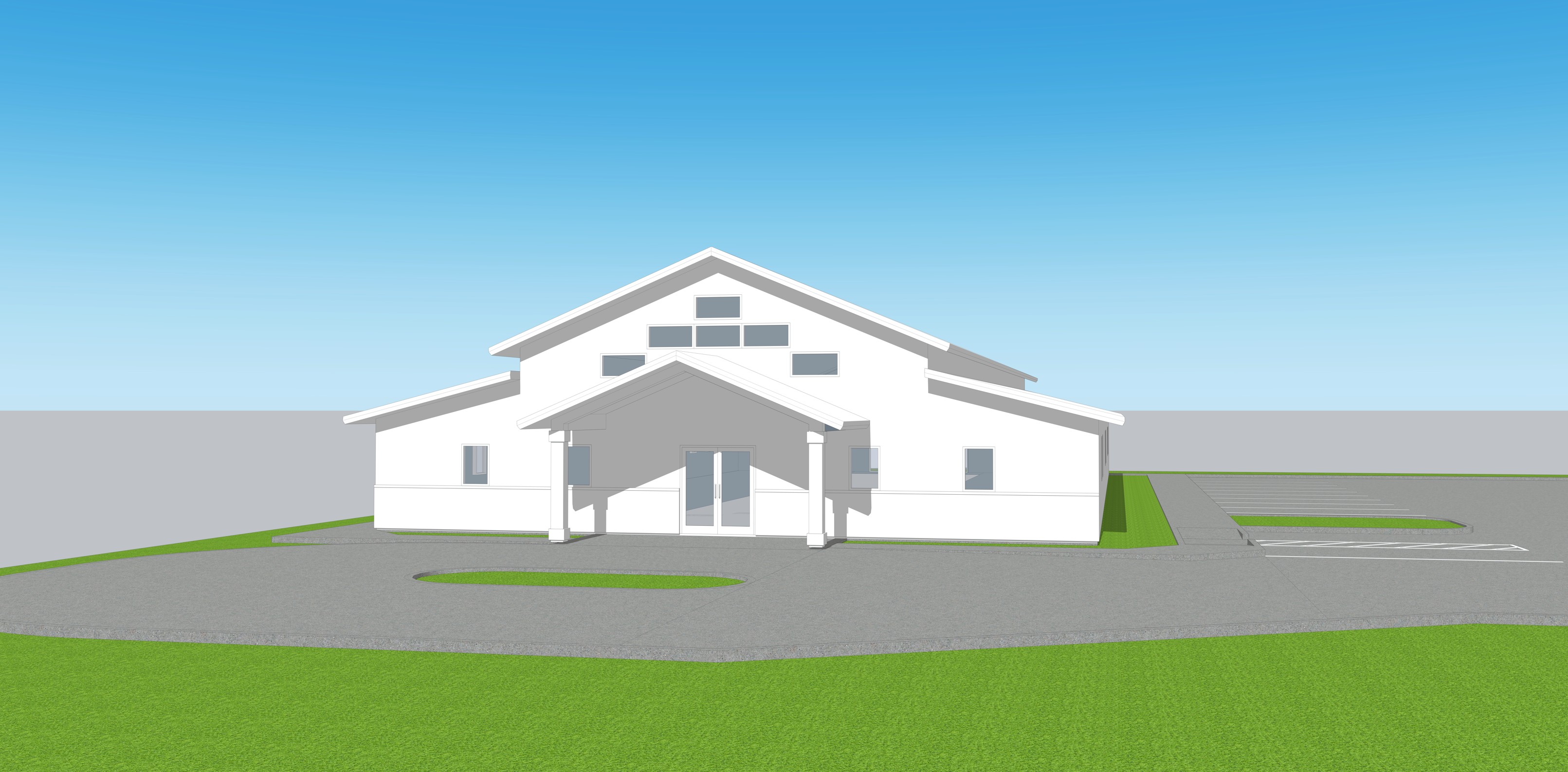 change the scene to summer afternoon blue sky some storm clouds add a flagpole in the landscape island adjacent to the front entry make the sky lighter and not as dark remove the light in the island and add the flagpole