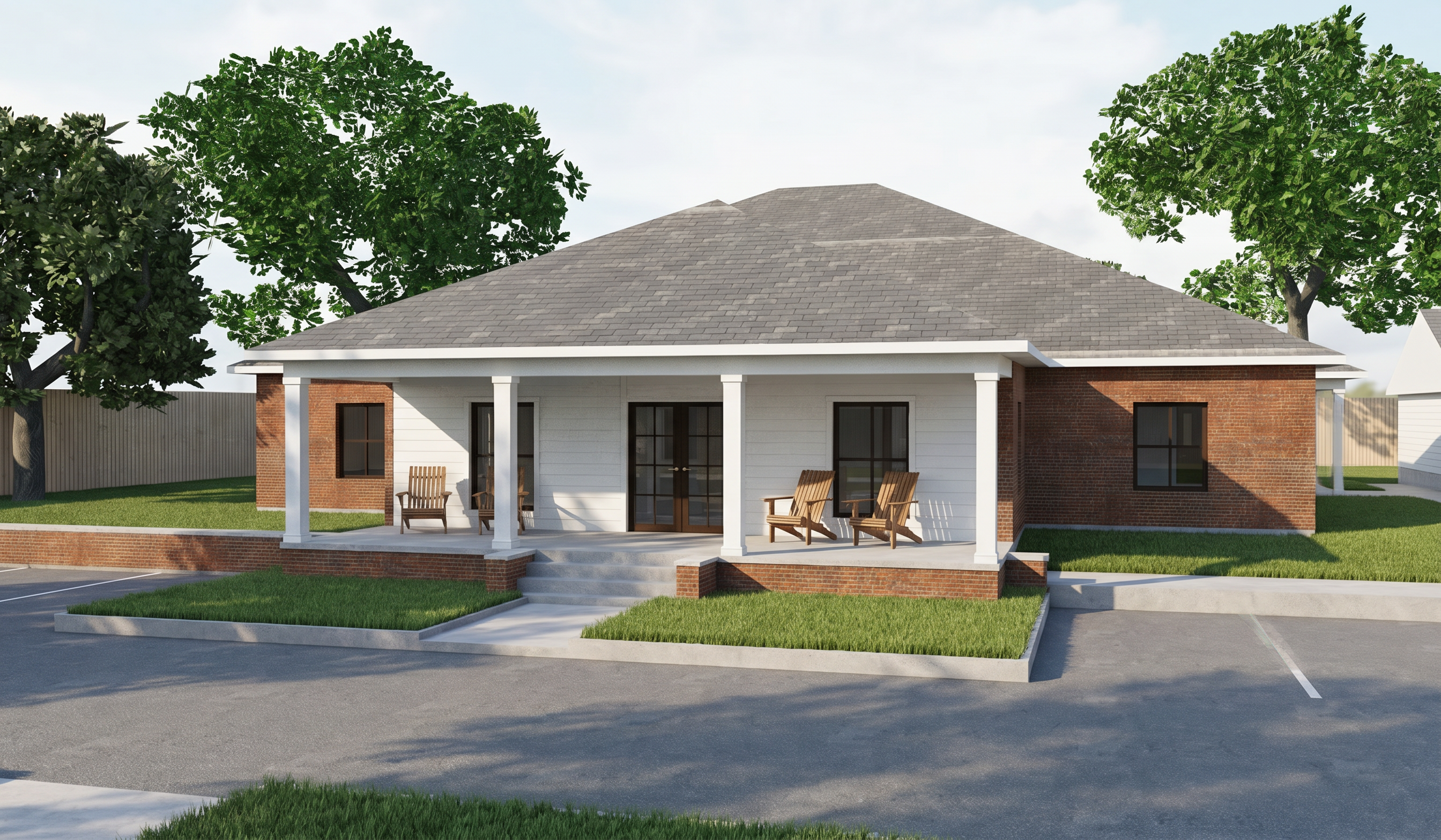 robert a m stern exterior shot create a photorealistic exterior visualization of the existing house keeping the exact original shape proportions structure and layout unchanged do not modify the architecture or add extensions only show how the house would look fully finished and renovated requirements preserve the original building shape and roof structure keep the dormers roof bay windows on the roof exactly as they are add a new finished roof with realistic modern materials apply new exterior plaster fa ade in neutral elegant tones white beige or light natural colors add new modern windows matching the original openings add new entrance doors modern and tasteful keep all window dormer and door positions unchanged exterior environment green well maintained lawn ornamental flowers and landscaping natural garden design clean pathways around the house realistic outdoor lighting daytime soft natural light style realistic finished family house clean modern natural european countryside style rendering requirements photorealistic high resolution natural lighting realistic textures and materials keep original perspective and camera angle architecture