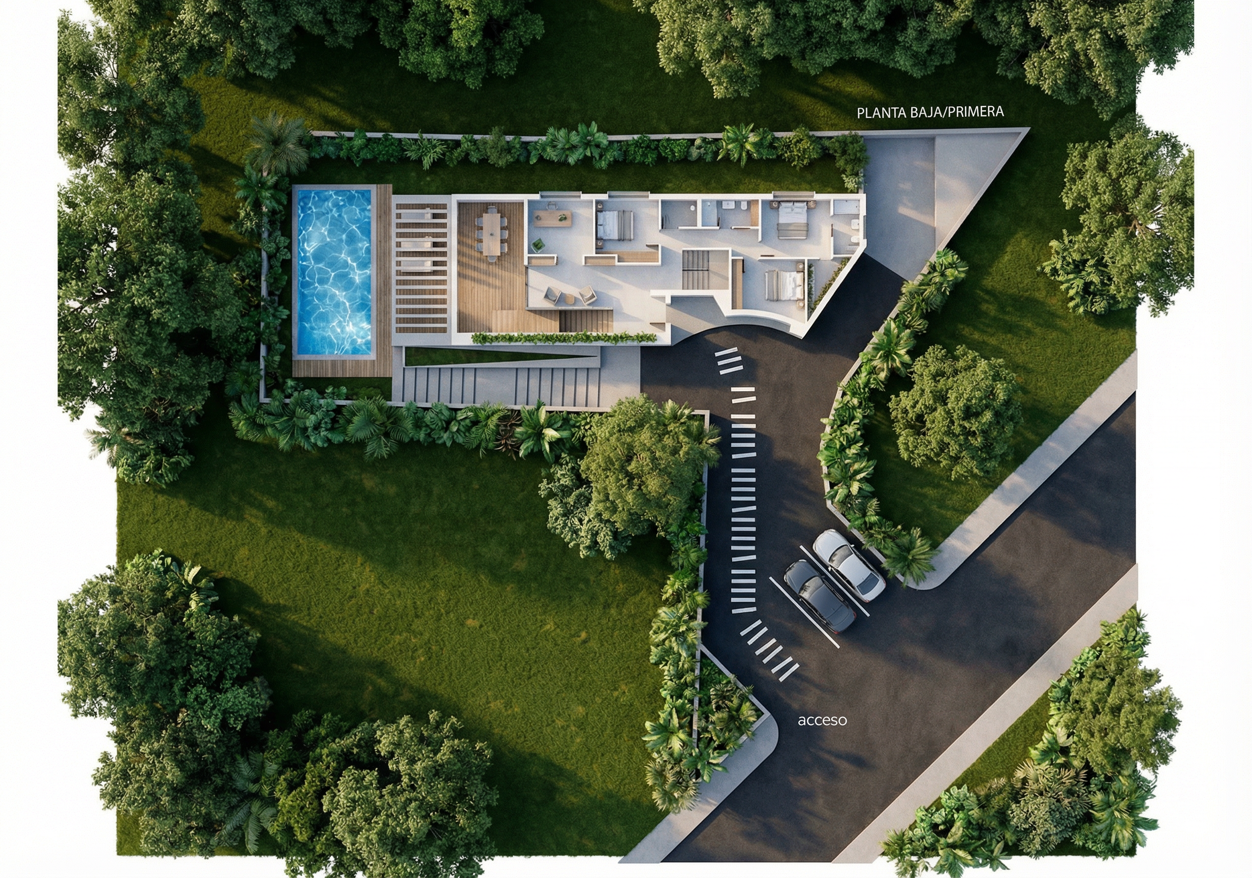ultra realistic architectural render of the provided sketchup facade this is an image to image enhancement strictly preserve the exact front elevation view camera position proportions and composition do not change angle perspective framing or geometry in any way material distribution must follow model exactly main facade left volume maltese limestone stone finish balcony feature zones back walls slab bands travertine stone cladding vertical feature strip travertine stone cladding right vertical volume smooth painted masonry in clean off white main facade stone warm beige maltese limestone cut stone blocks or large panels subtle joints clean and consistent slightly textured but refined no heavy aging or stains travertine balcony zones vertical strip lighter beige tone than the main stone soft horizontal veining honed matte finish large format tiles with minimal joints clean modern not rough painted volume right side smooth rendered plaster clean off white tone slightly warm not stark white matte uniform minimal texture important keep all three materials clearly distinct no blending between limestone travertine and plaster sharp clean transitions between surfaces balcony railings clear glass balustrades minimal framing realistic transparency and reflections apertures important all window and door frames must be crisp white clean sharp modern finish lighting natural mediterranean daylight soft shadows balanced exposure context maintain surrounding buildings exactly as in the original image no redesign or reinterpretation rendering style high end photorealistic architectural visualization modern mediterranean clean and refined strict constraints no camera movement no perspective change no material reinterpretation no material blending important treat the input image as fixed and only enhance materials and realism