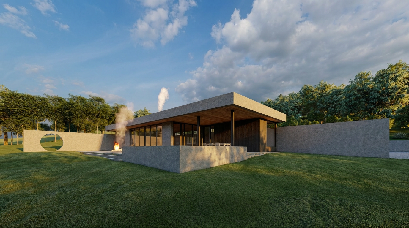 contemporary beach style white colour scheme white roof light warm greay colour for walls lush green lawn low level tropical landscaping around house