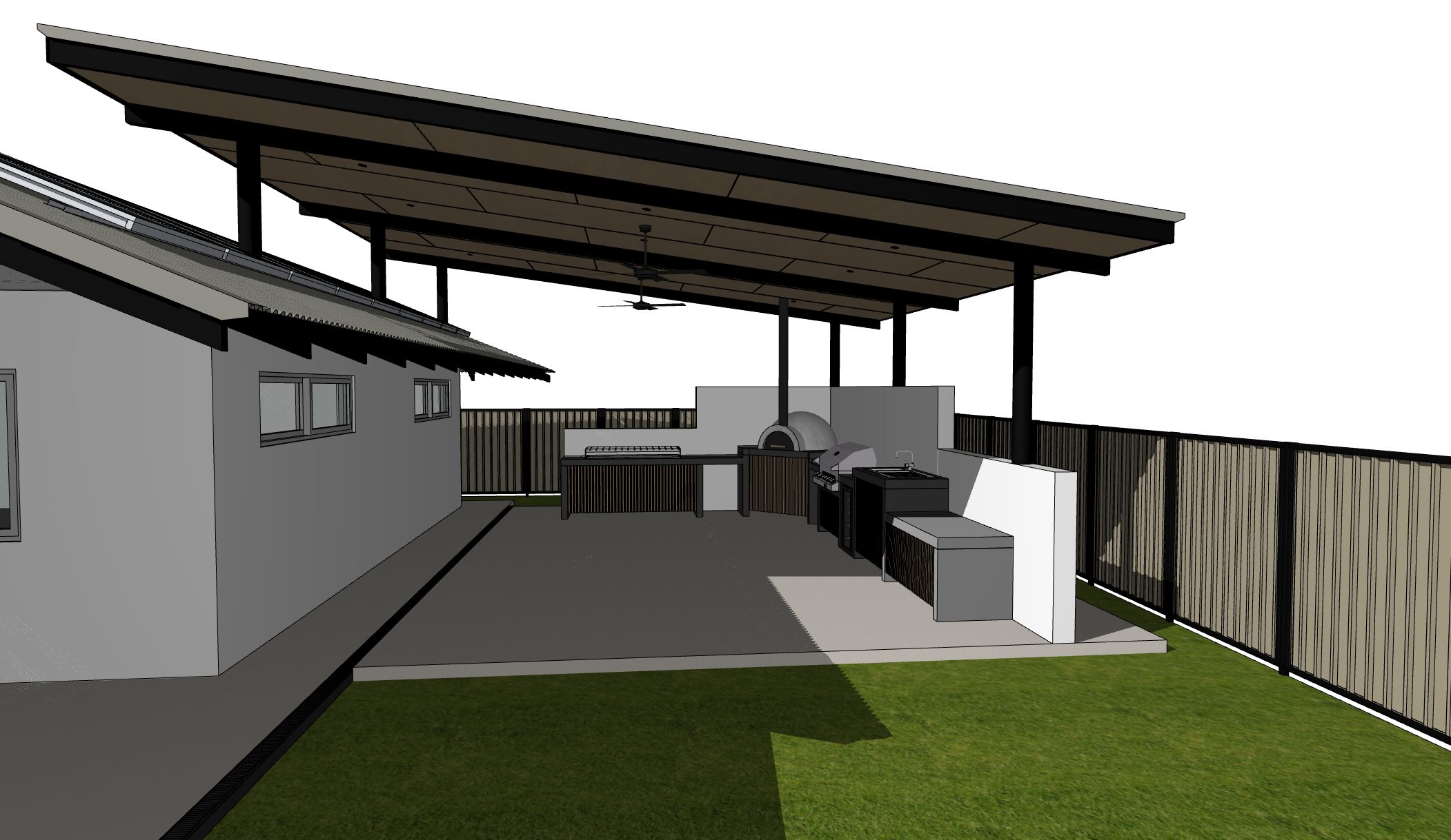 light coloured concrete bench pine coloured timber strips add lighting