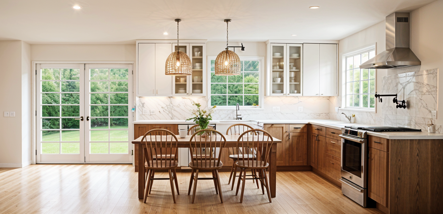 elegant white kitchen dark grey handles grey floor with some parts in ceramic tiles