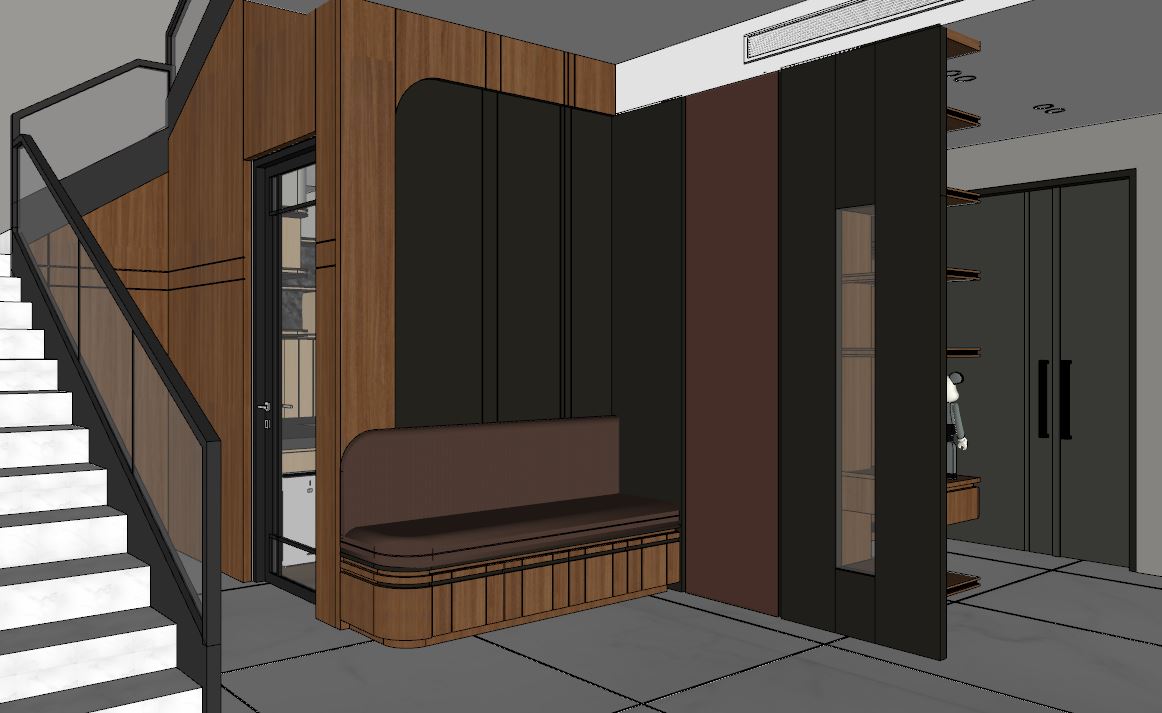create an ultra realistic image without changing any of the structure shape design or materials dont resize the jpeg use soft white marble texture for the floor don t change the color material or shape add spotlights to the ceiling add indirect light to shelves and add some decorations and add some blanket and mini pillow to the bench add indirect light to bench panel
