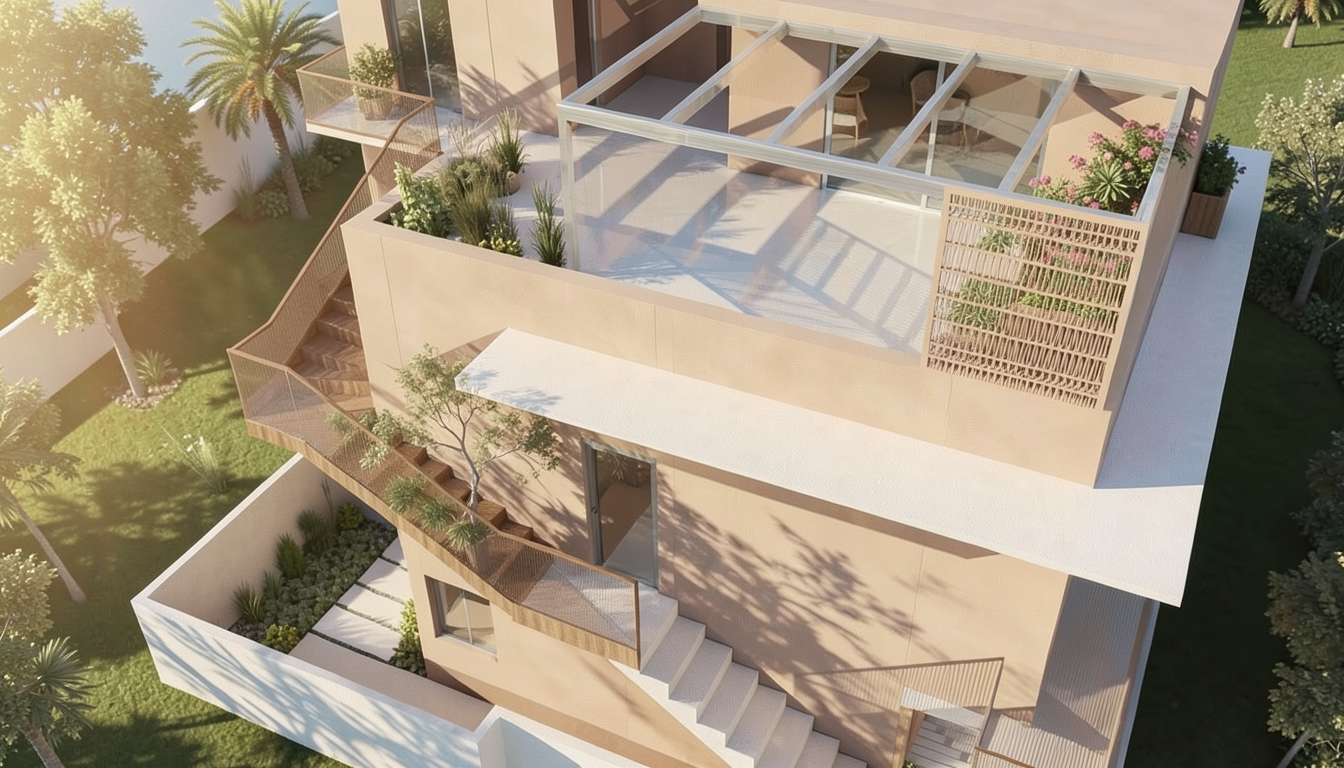 exterior shot don t change the cad plan furniture or add elements only change the style