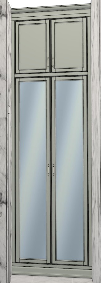 the cabinets and mirror frames are painted farrow and ball pale powder blue the tall doors have mirror inserts