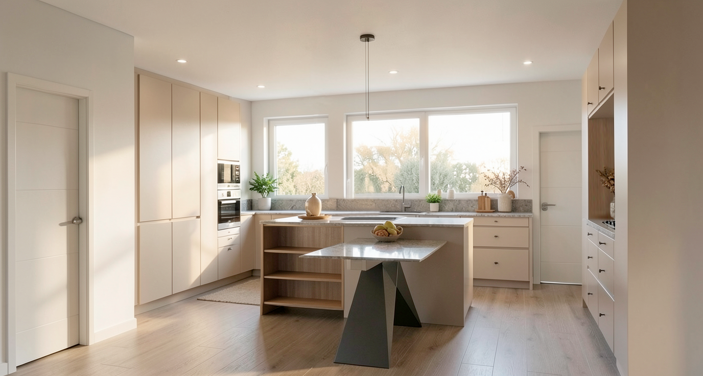 elimina la alfombra que sale a la izquierda en el suelo ponle 4 sillas a la mesa dos a cada lado