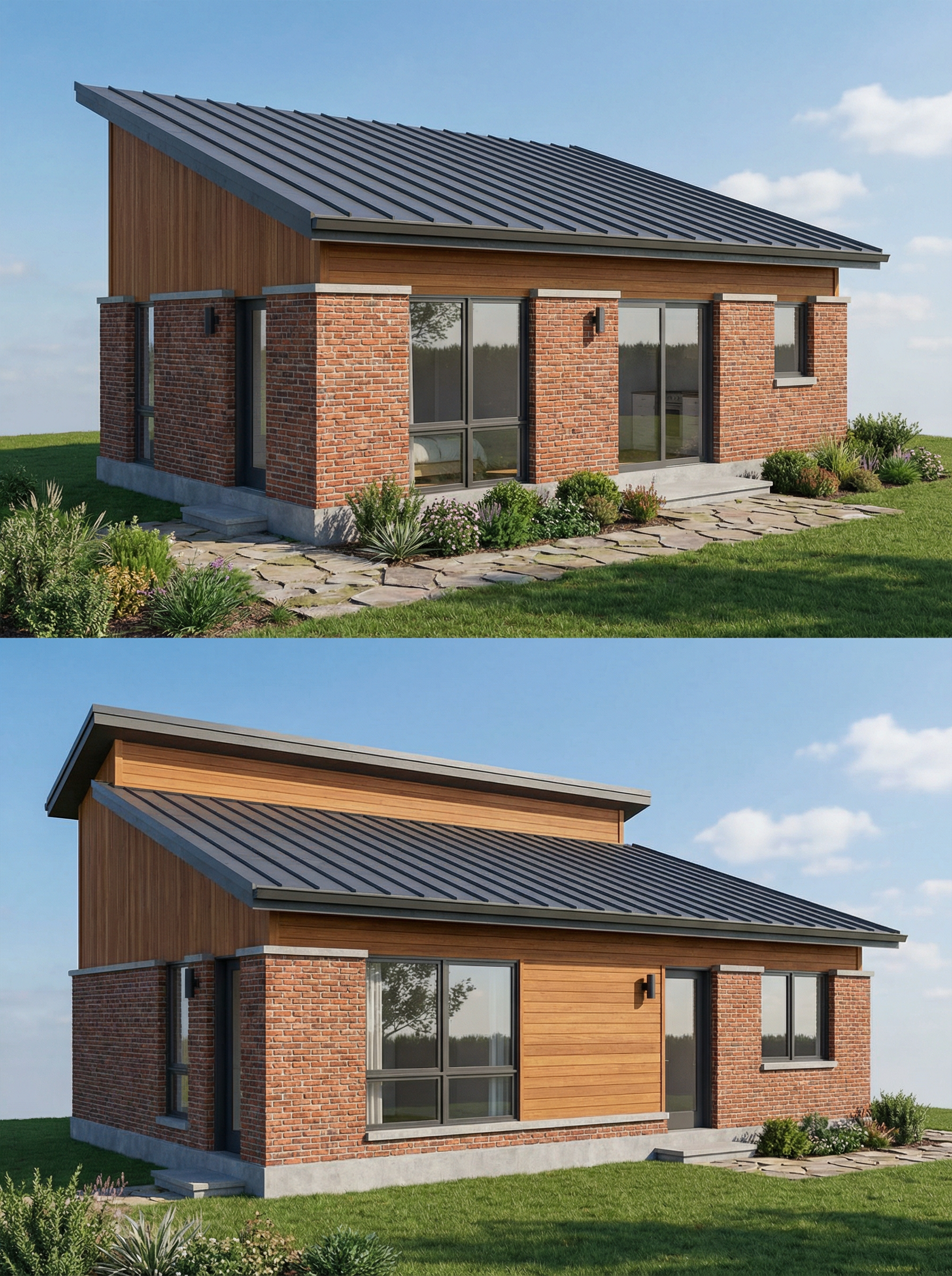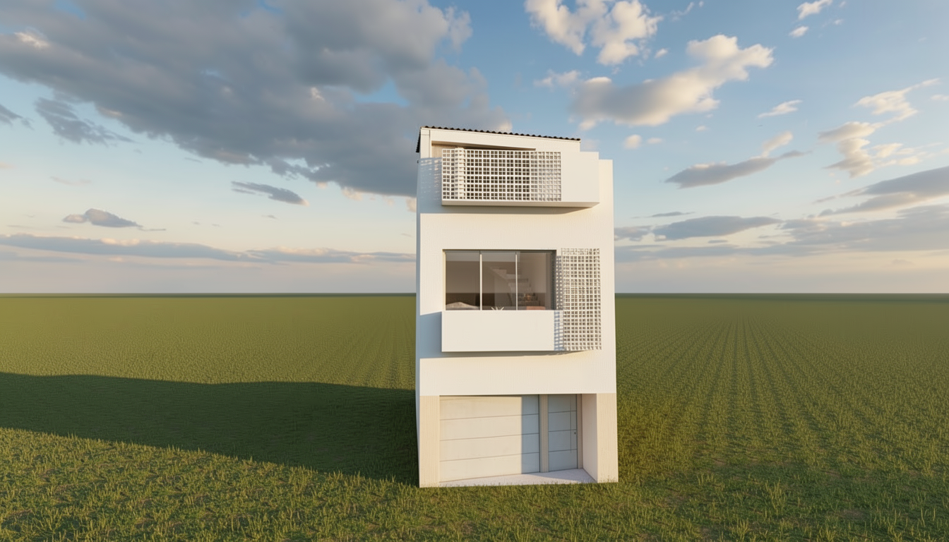 a ade unas lamas blancas verticales en los laterales d la planta baja sin cambiar perspectiva ni materiales