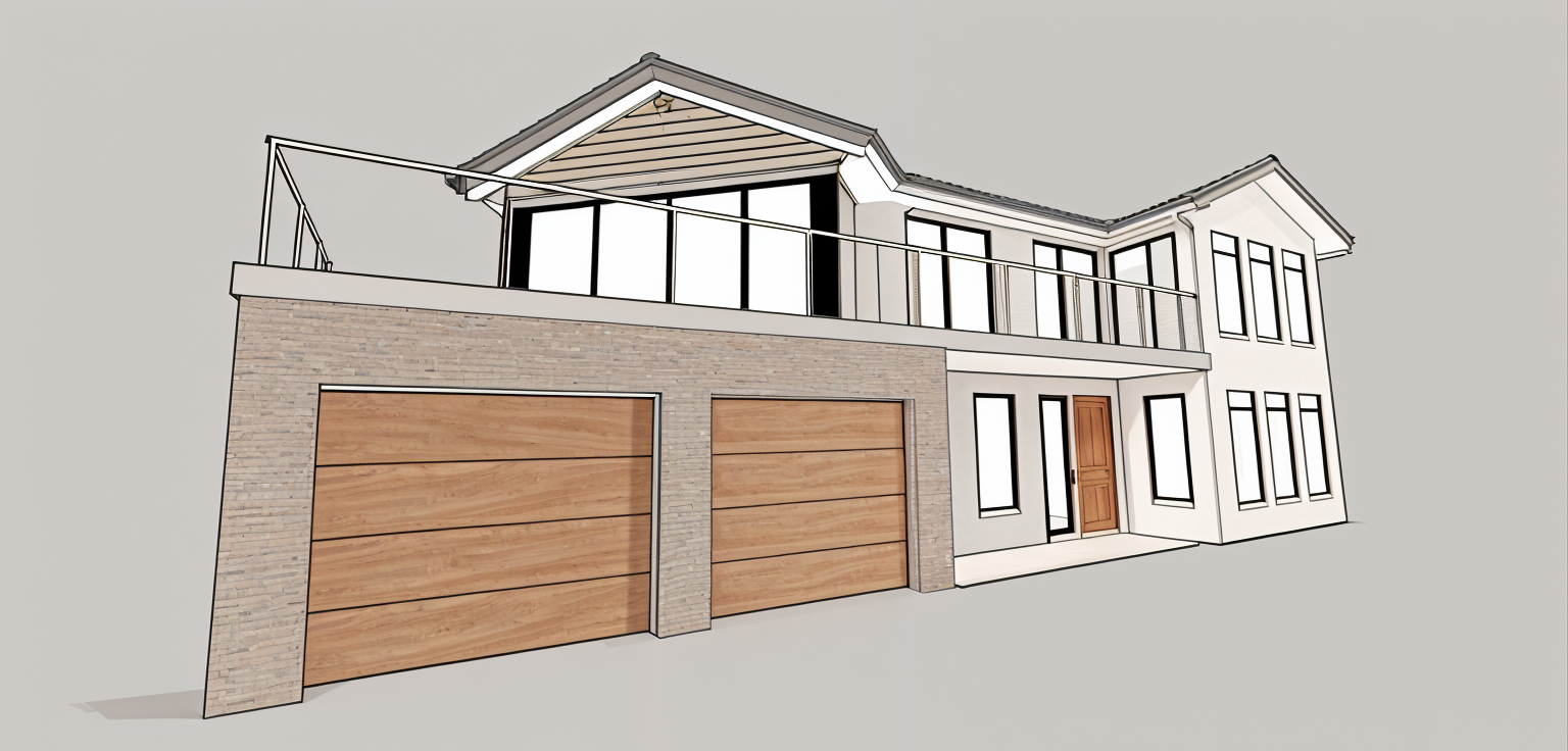 richard rogers exterior shot a modern two story house with white walls and clean lines the roof is a sleek wooden accents frame the windows and doors complemented by warm brown tones large glass doors and windows reflect natural light creating a bright atmosphere the surrounding grass is a lush green enhancing the fresh serene environment english bach jard the overall atmosphere is peaceful and contemporary ideal for a tranquil residential setting architecture