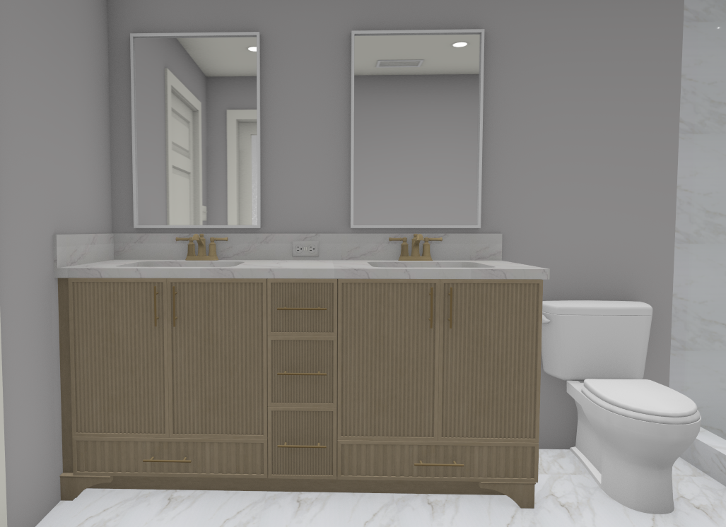 primary bath vanity with micro shaker reeded doors add a few decorations
