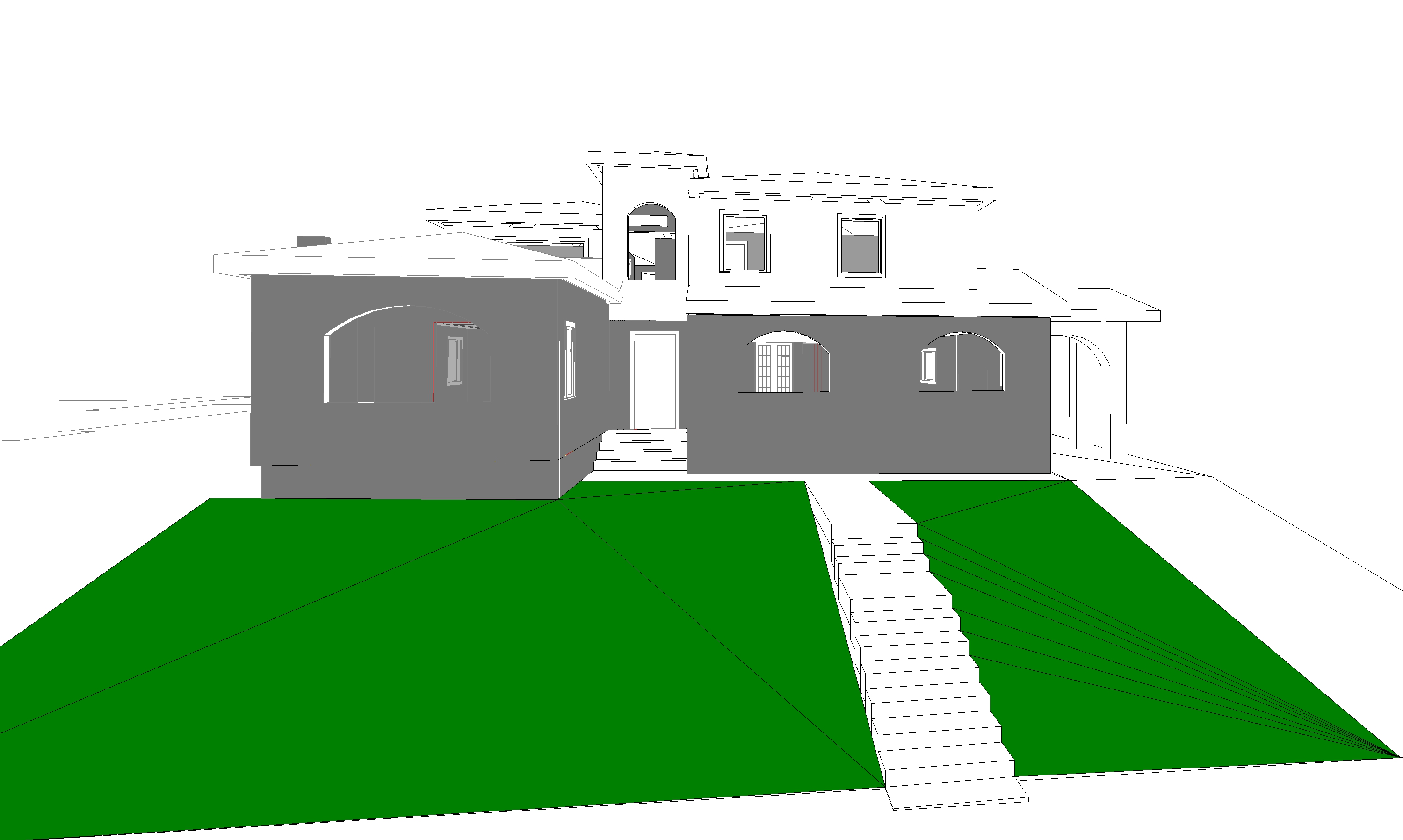 exterior of building white window frames black more planters up front