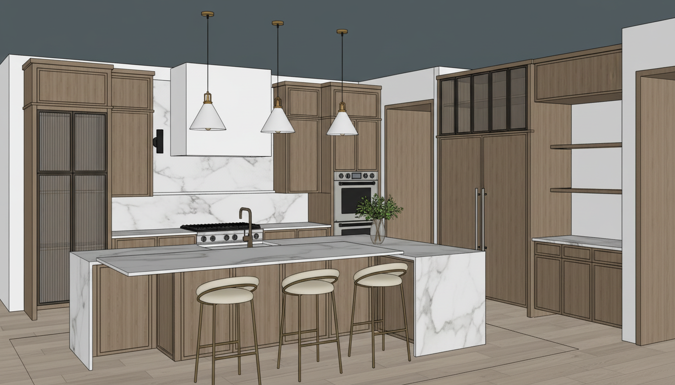 core instruction render a professional high end photorealistic architectural visualization of the provided image the original image must serve as a strict visual blueprint 1 geometry perspective non negotiable 1 1 blueprint maintain 100 identical geometry dimensions proportions and perspective exact placement do not move resize add or remove any structural elements walls floor heights roof slopes and the positions of all windows and doors must be pixel perfect to the original camera keep the exact same fov field of view camera height and viewing angle as the source image 2 architectural style modern tuscan facade warm contemporary tuscan style use a soft warm off white or light beige plaster with a fine grain texture subtle imperfections and realistic soft shadowing roof traditional tuscan kupa kanalica clay tiles in natural slightly weathered terracotta tones details all windows must have external wooden shutters grilje and elegant internal decorative muntins proportional vertical horizontal divisions colors desaturated natural earthy tones windows shutters and doors in soft neutral light brown wood 3 environment background background scene a realistic inhabited continental european flatland nizina residential area include several visible neighboring houses in the distance vegetation surround the property with natural well balanced vegetation including birch pine thuja and apple trees the background should be recognizable but subtle not over saturated or distracting foreground the yard and driveway must match the original layout exactly use high quality stone paving or concrete textures add subtle tuscan elements like a ceramic flower jug lavender rosemary without changing the composition 4 lighting atmosphere lighting soft diffused daylight slightly overcast with a warm mediterranean glow avoid harsh shadows or high contrast hdr atmosphere professional architectural photography style clear inviting and highly detailed