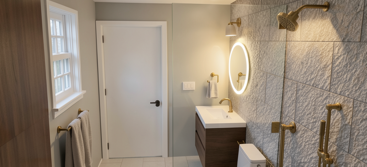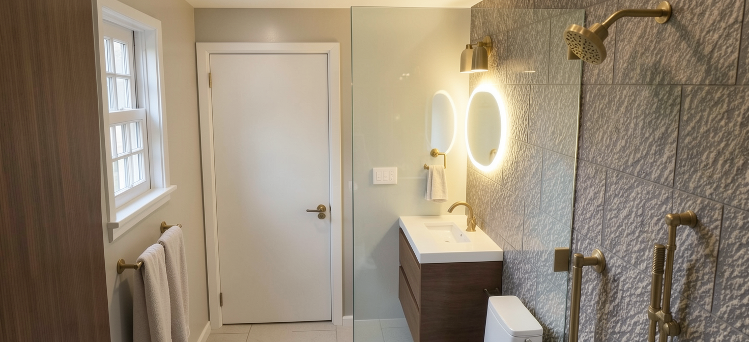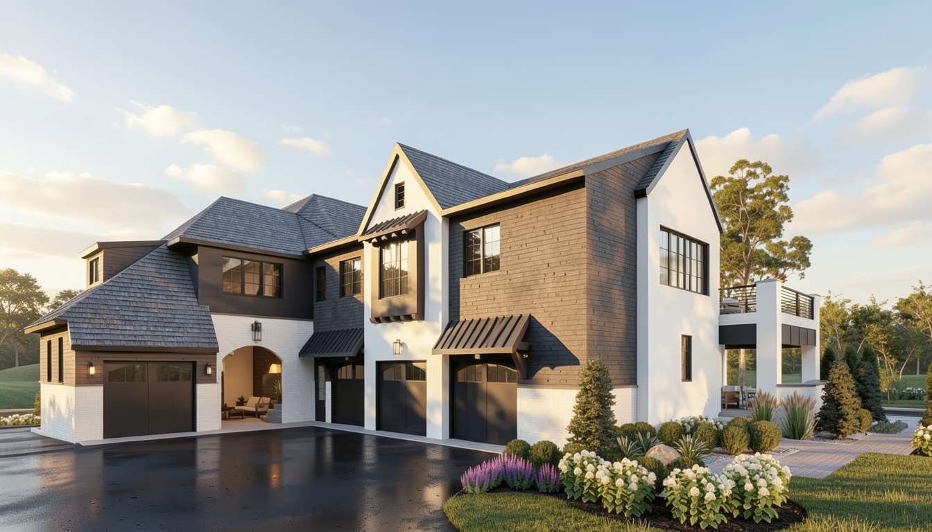 transform the uploaded hand drawn architectural perspective into a realistic architectural rendering the diagonally cut corner of the building is finished with corrugated metal sheets the slanted wall with the door is made of transparent polycarbonate panels keep the original perspective and proportions from the sketch use realistic materials natural daylight and soft shadows modern industrial architectural style high realism detailed textures professional architectural visualization