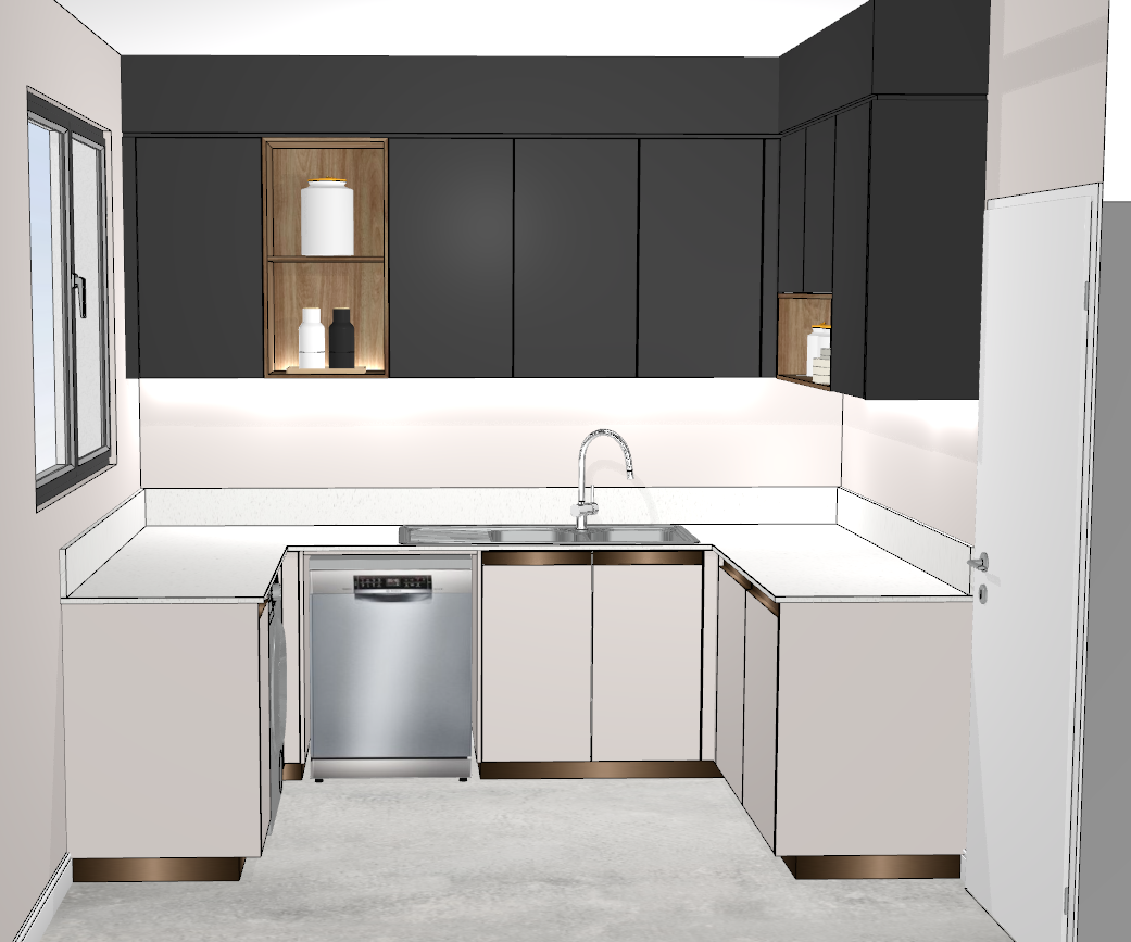 swop the dark wall colours for the nude base units colours make the base units colours the darker colour keep same stone tops keep wood accents