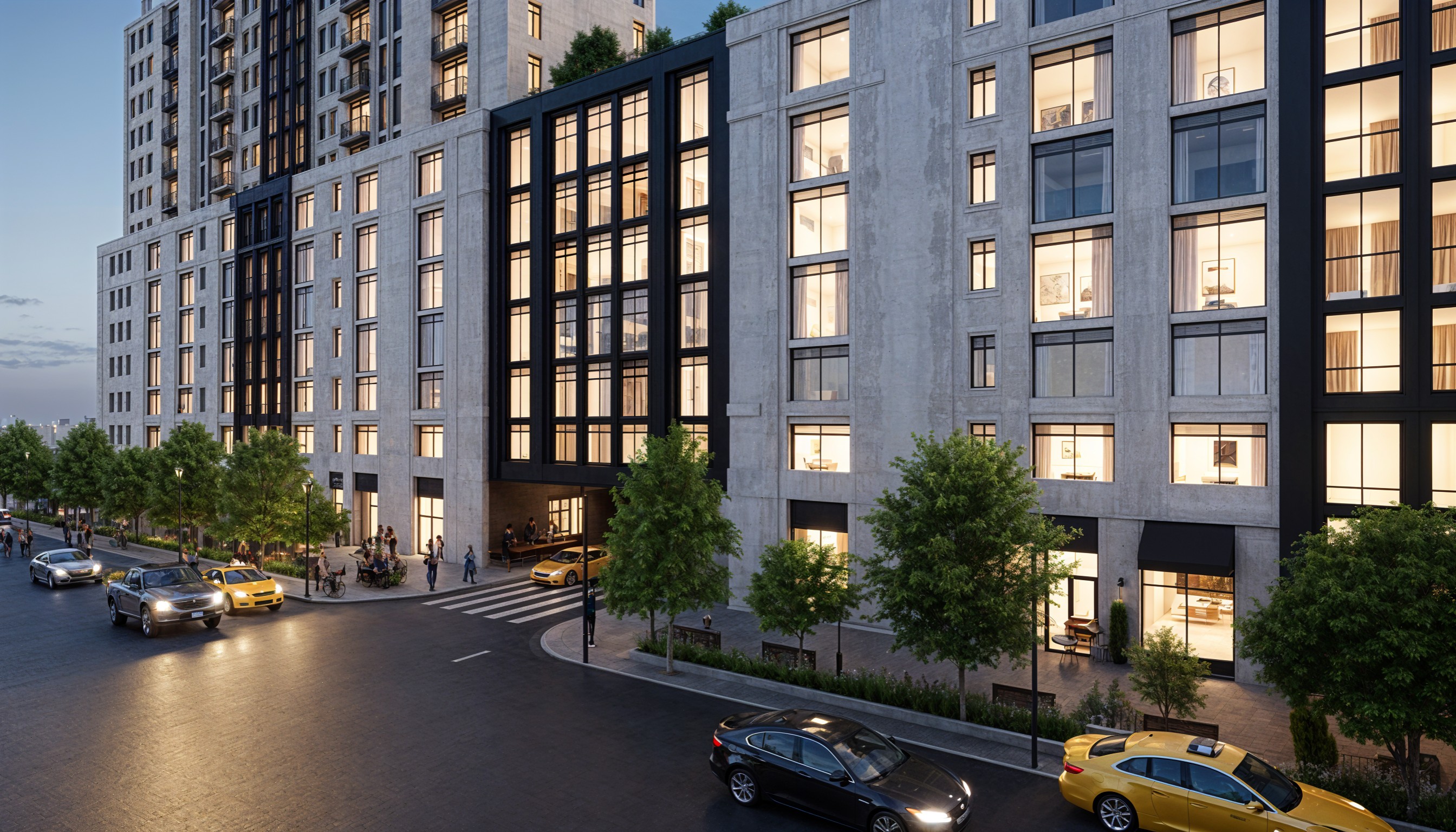 improve the image keep the pre evening lighting scene change the street scene make the limestone a smoother finish
