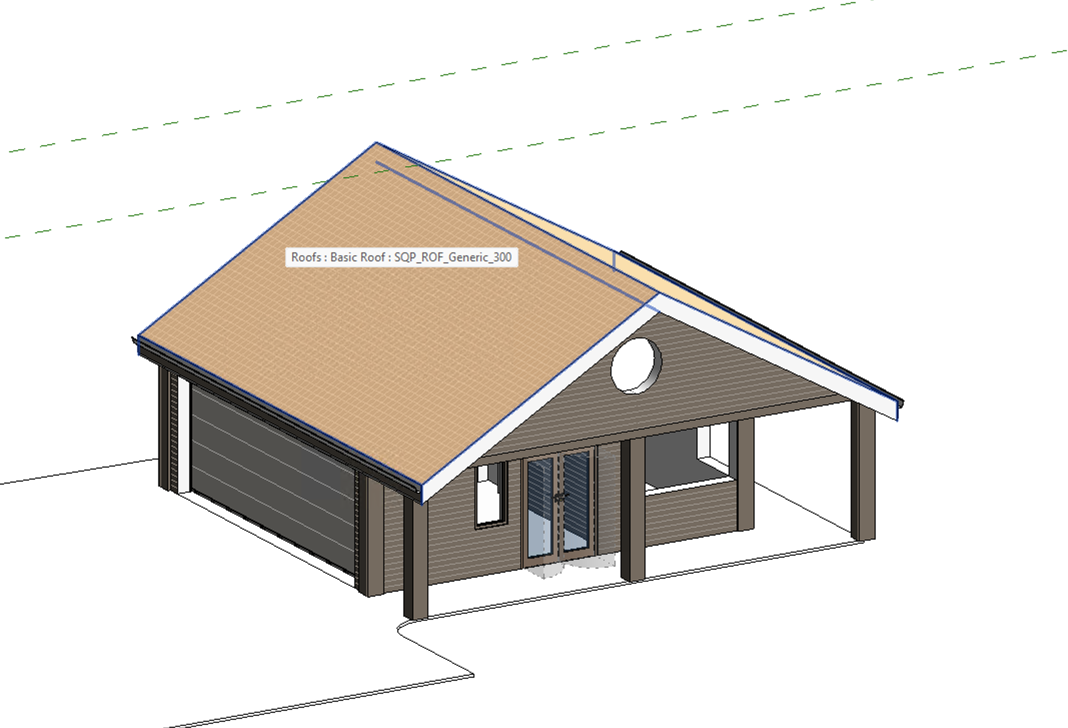 make realistic with tiber feather boarding and orange slate roof with greenery background