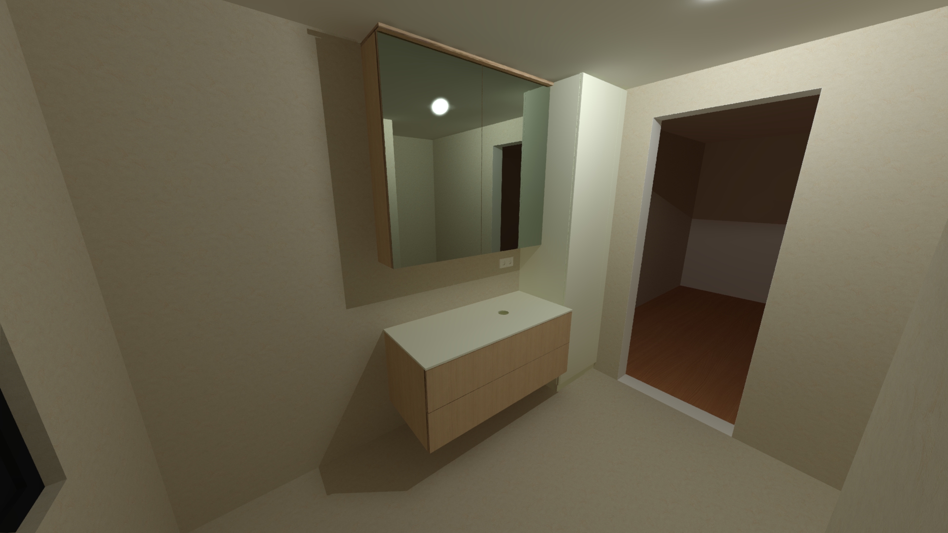 maak het nog foto realistischer boven de spiegel zit er een ledstrip deze mag aan staan