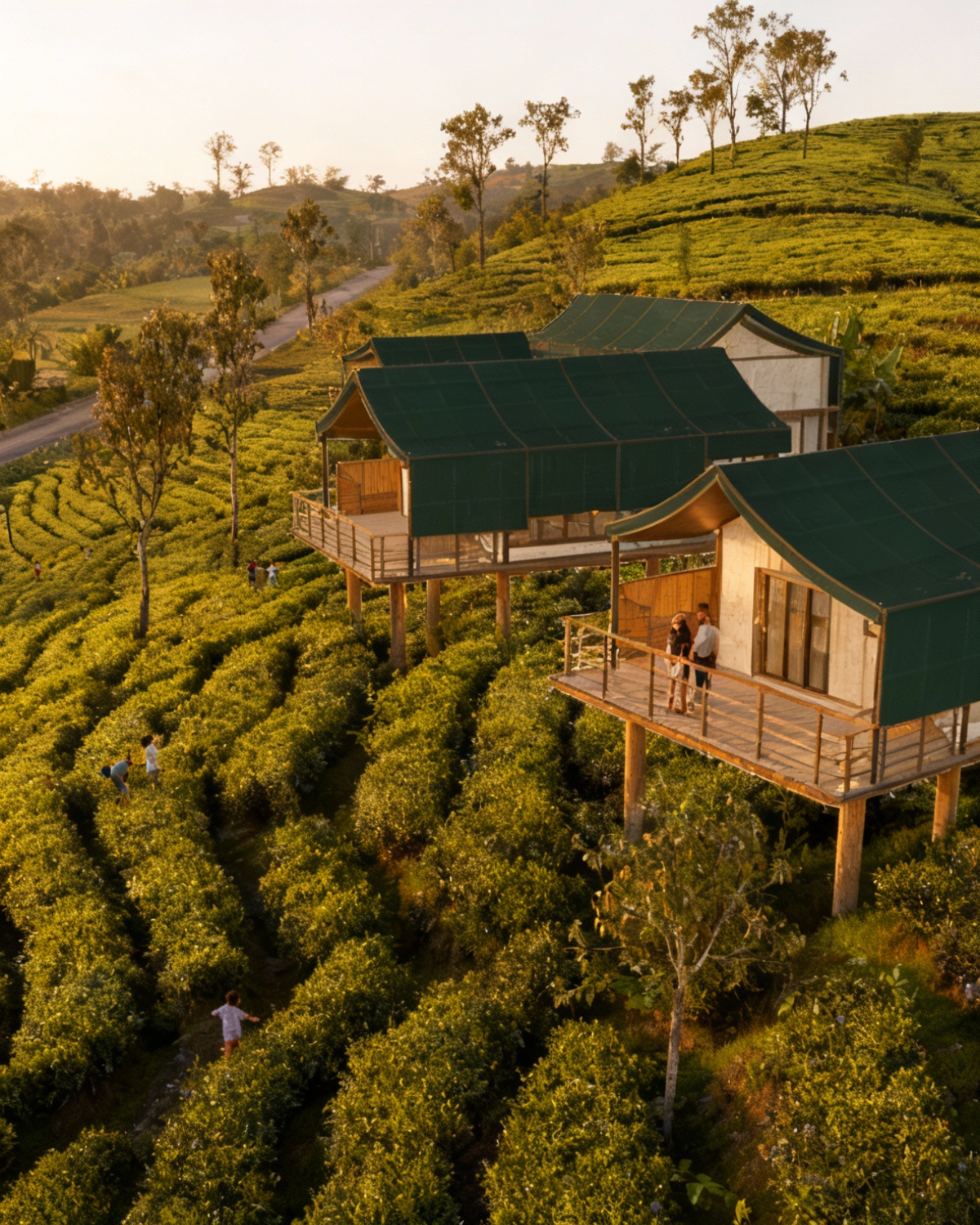 change background to forest with a blue sky and clouds add a lot of trees infront of the building on the right side make it look like its watercolor have the border fade out to white make the grey look like pavement