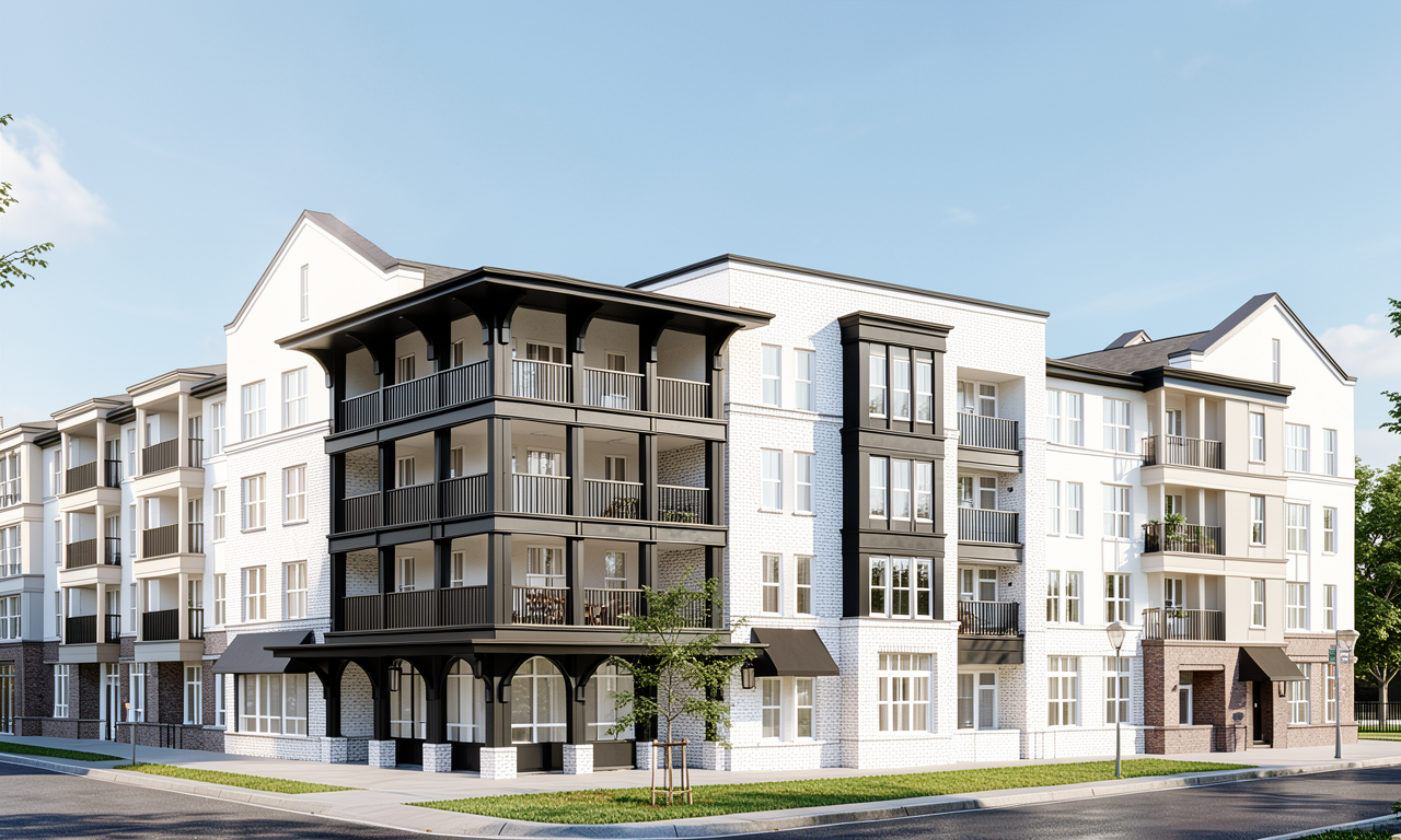 daytime view with white brick white stucco and white trim white windows