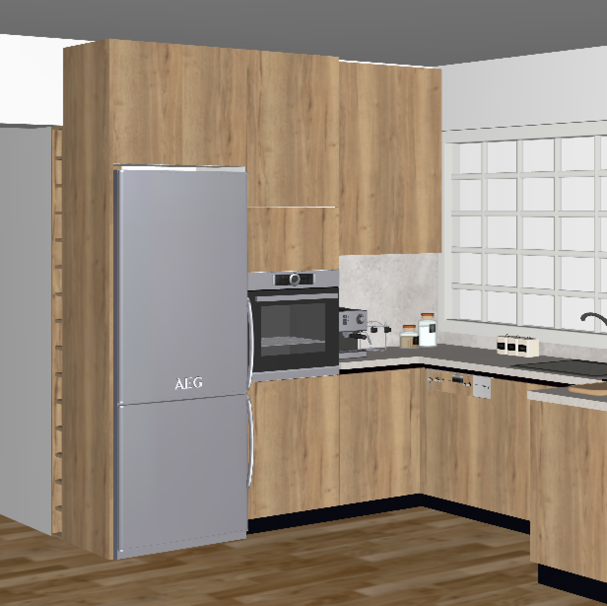 just a 3d render add some lights keep the colours as it is turn the colour of the worktop to be the same as the tiles