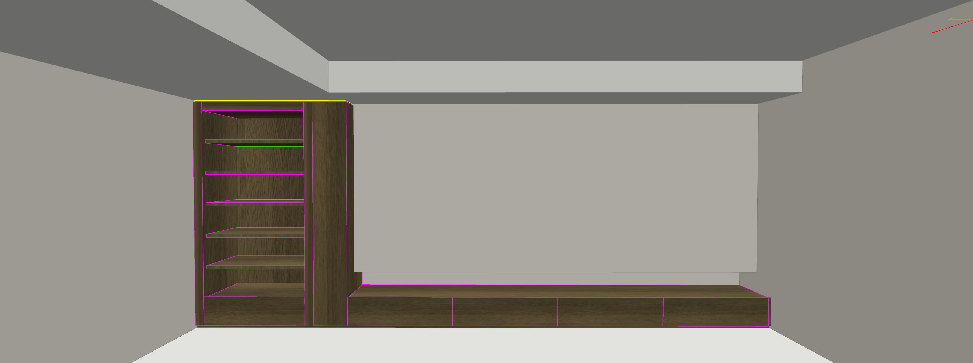 the floor should be covered with beige carpet there should be a projector tv cinema unit on the wall led lighting in the niches and led lighting under the tv in the niche