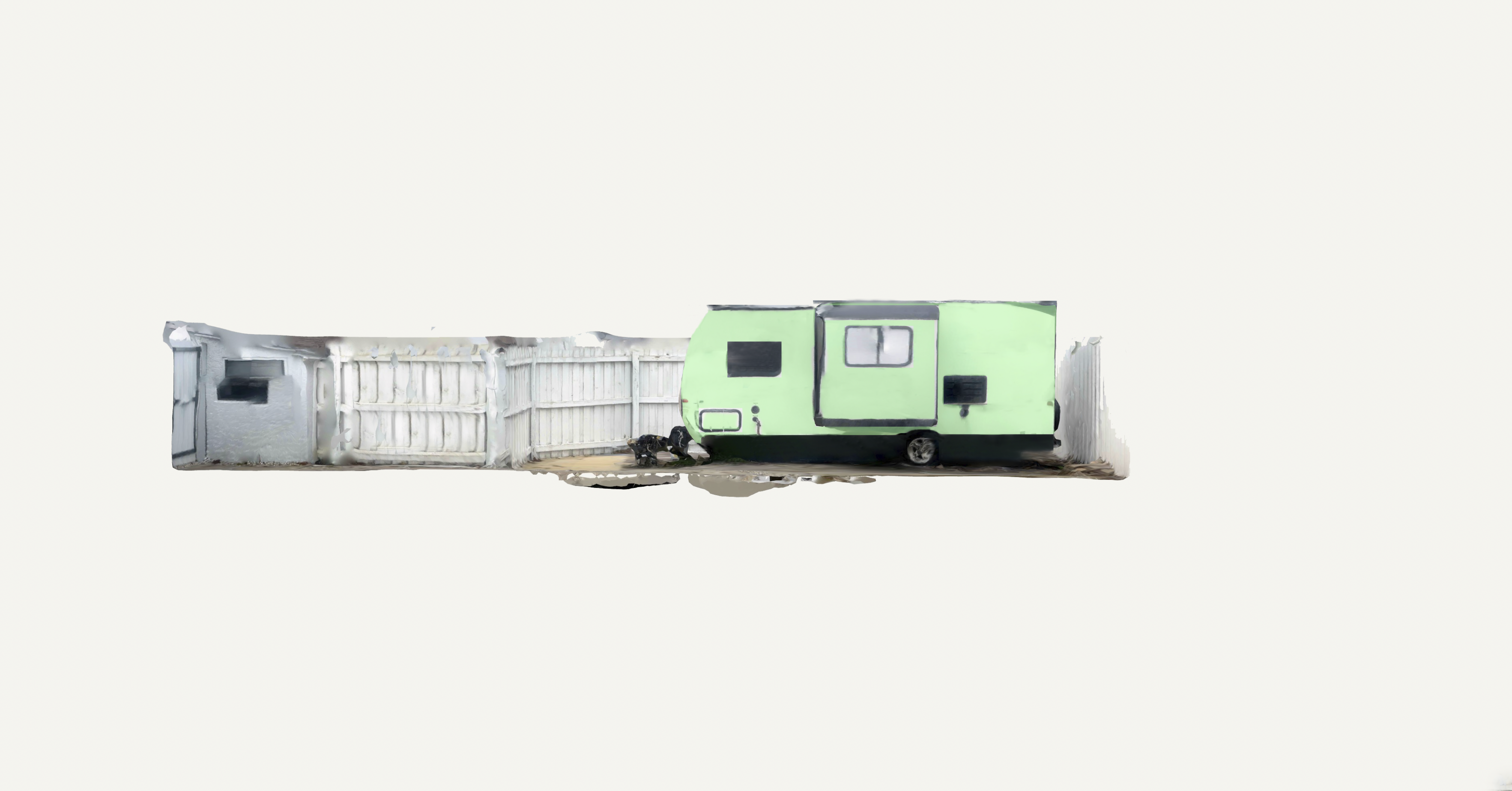 exterior shot create a mock up for a small rv camper both interior and exterior design