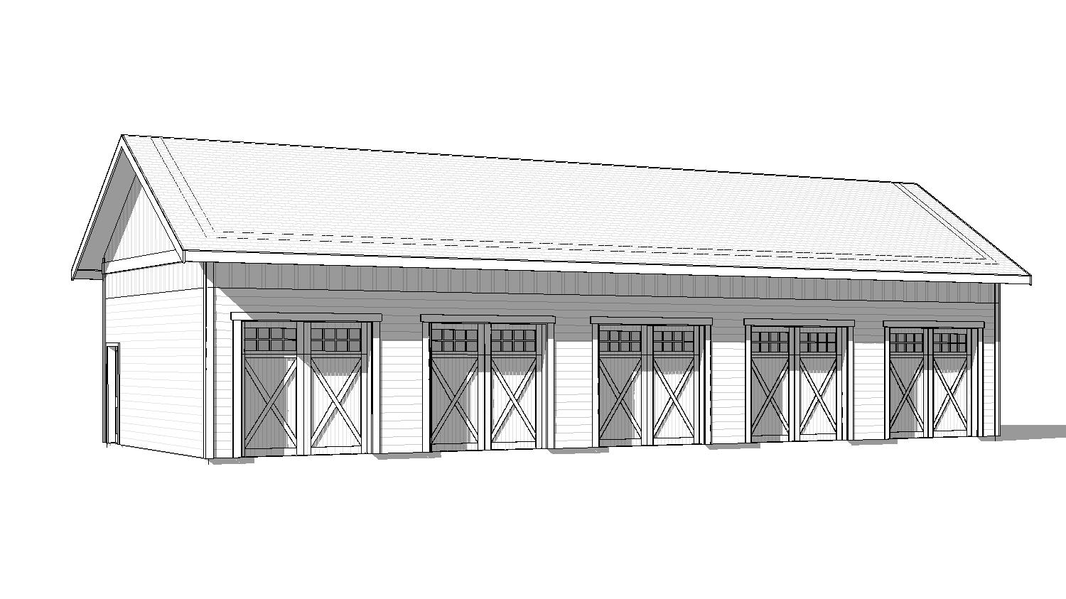 clean timber clad architectural exterior rendered in cinematic lush morning lighting wood garage doors asphalt driveway leading up to the garage doors warm horizontal cedar tongue groove wood siding with minimal grain pattern grass foreground black standing seam metal roof visible lush forest landscape in the background natural wood textures high fidelity photorealistic visualization crisp shadow falloff refined facade geometry richly detailed grain patterns soft atmospheric depth premium architectural photography mood ultra clean composition and materials