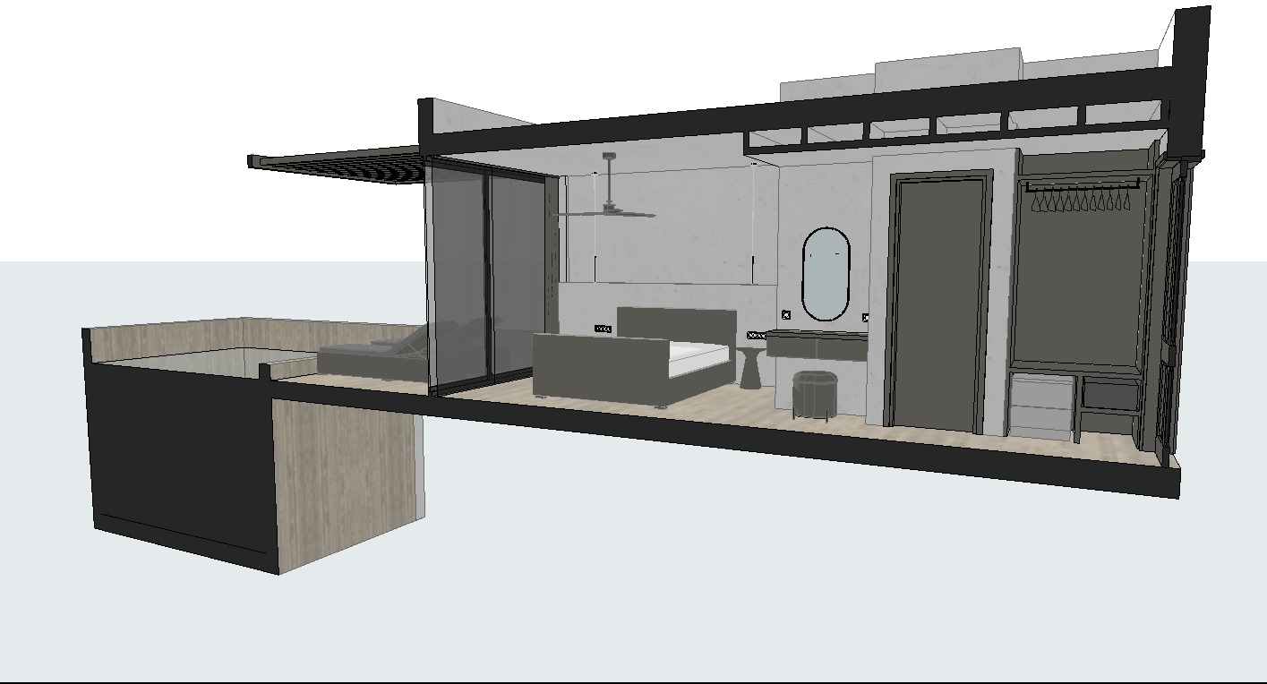 high quality evening lights on paint walls beige gray travertine floor ouside white background