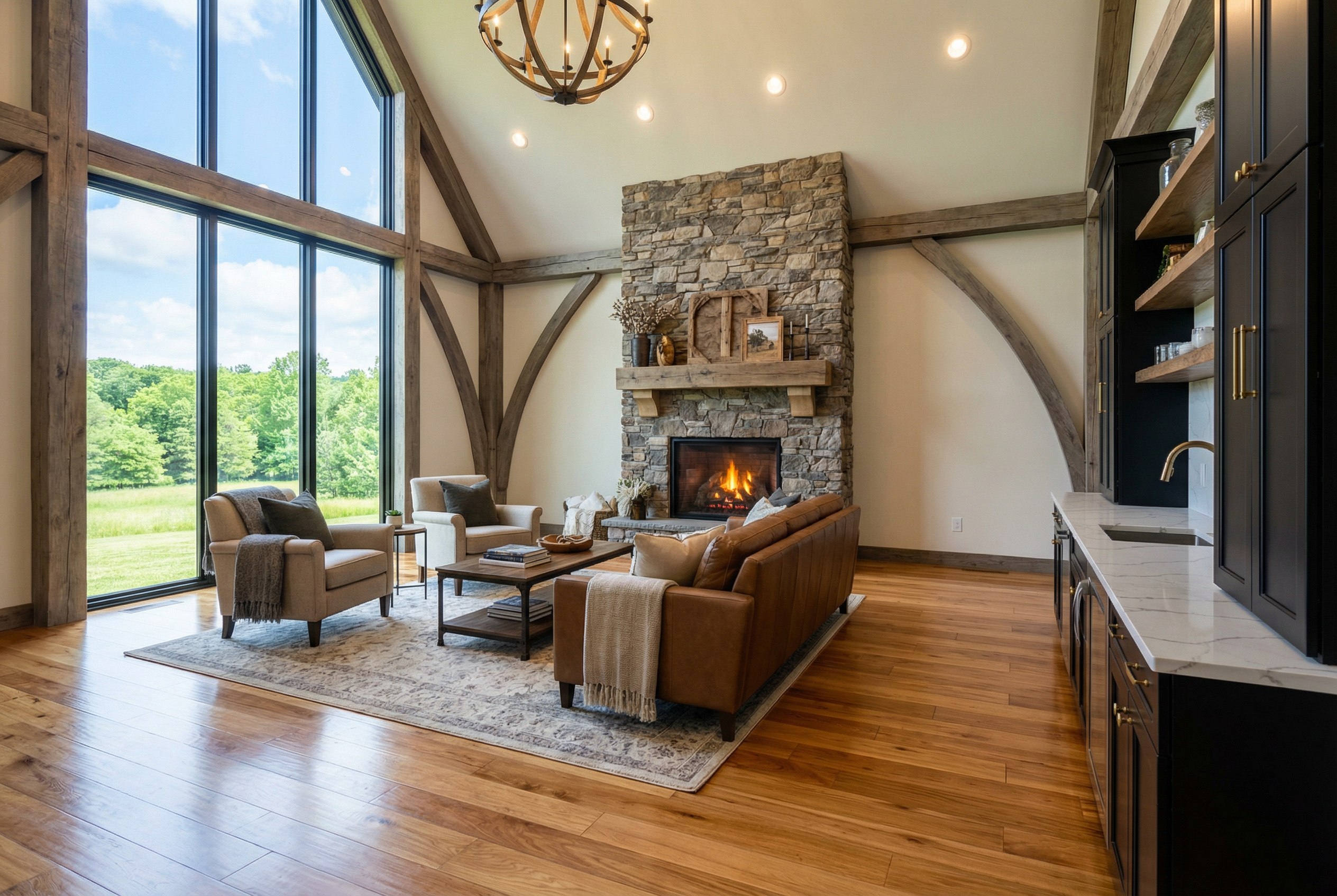 make the entry door under the porch the same wood color as the beam