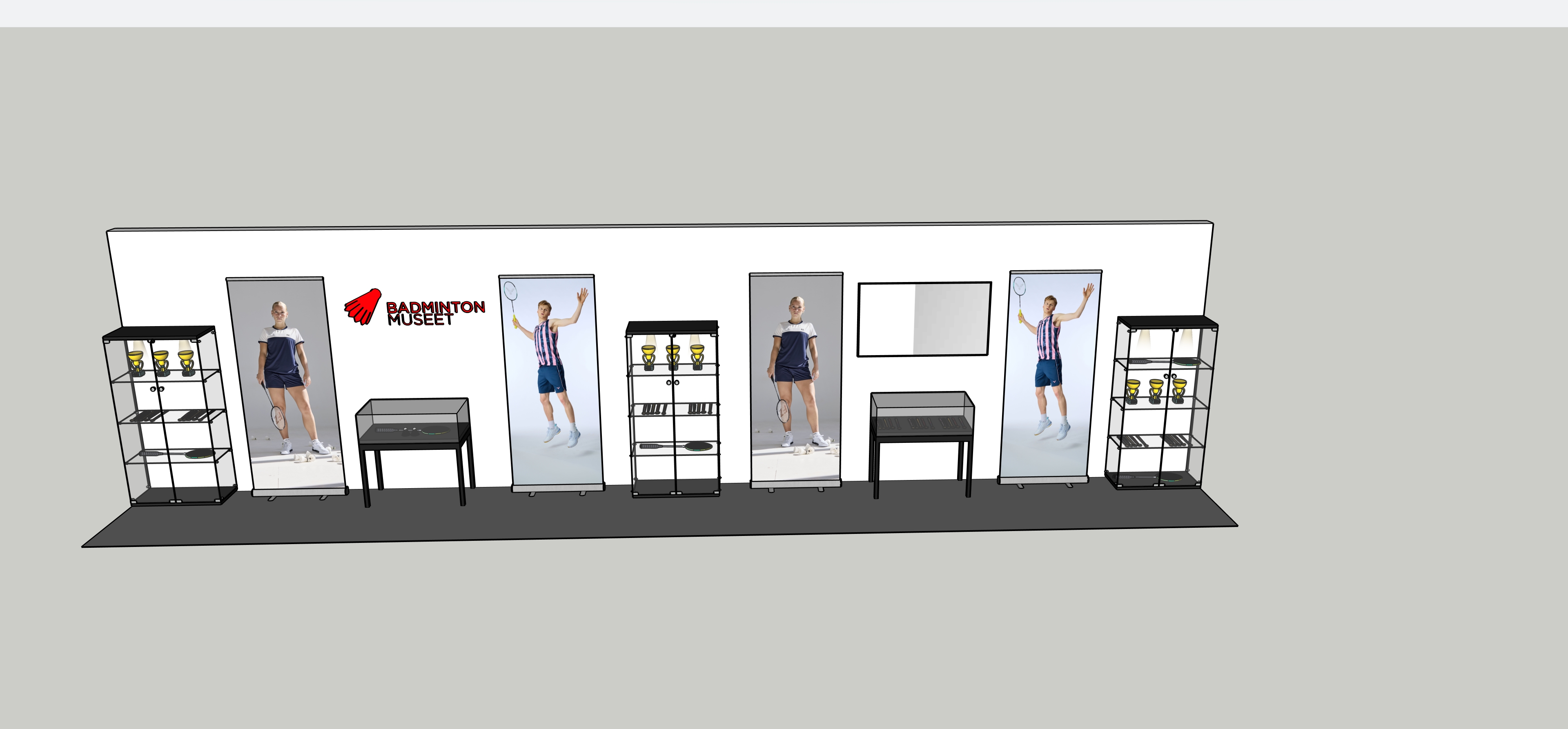 modernist interior shot make this exhibition stand photorealistic and more realistic use high quality realistic materials and textures matte painted walls with subtle surface texture black needle felt or carpet flooring powder coated metal shelving with a slight sheen and glass display cases with accurate reflections and transparency add natural trade show lighting from above with soft shadows realistic global illumination and correct light interaction with glass and metal surfaces improve posters and roll ups so they appear as real printed fabric or plastic including slight wrinkles depth and natural shadows screens should look like real flat panel displays with depth reflections and a thin black frame introduce subtle imperfections such as small material variations slight wear and realistic details to avoid a perfect cg look while keeping a professional finish eye level camera angle realistic perspective professional exhibition photography style high detail ultra realistic render architecture