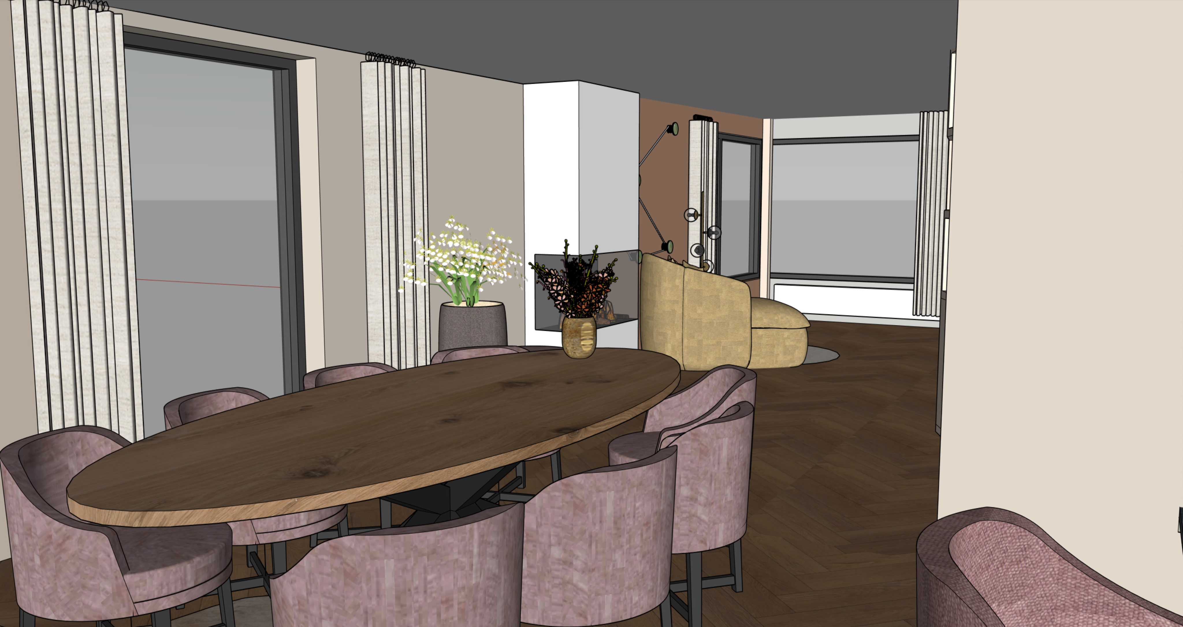 make a photo realistic render of this 3d model add natural light from the windows and add light to the wall lamp