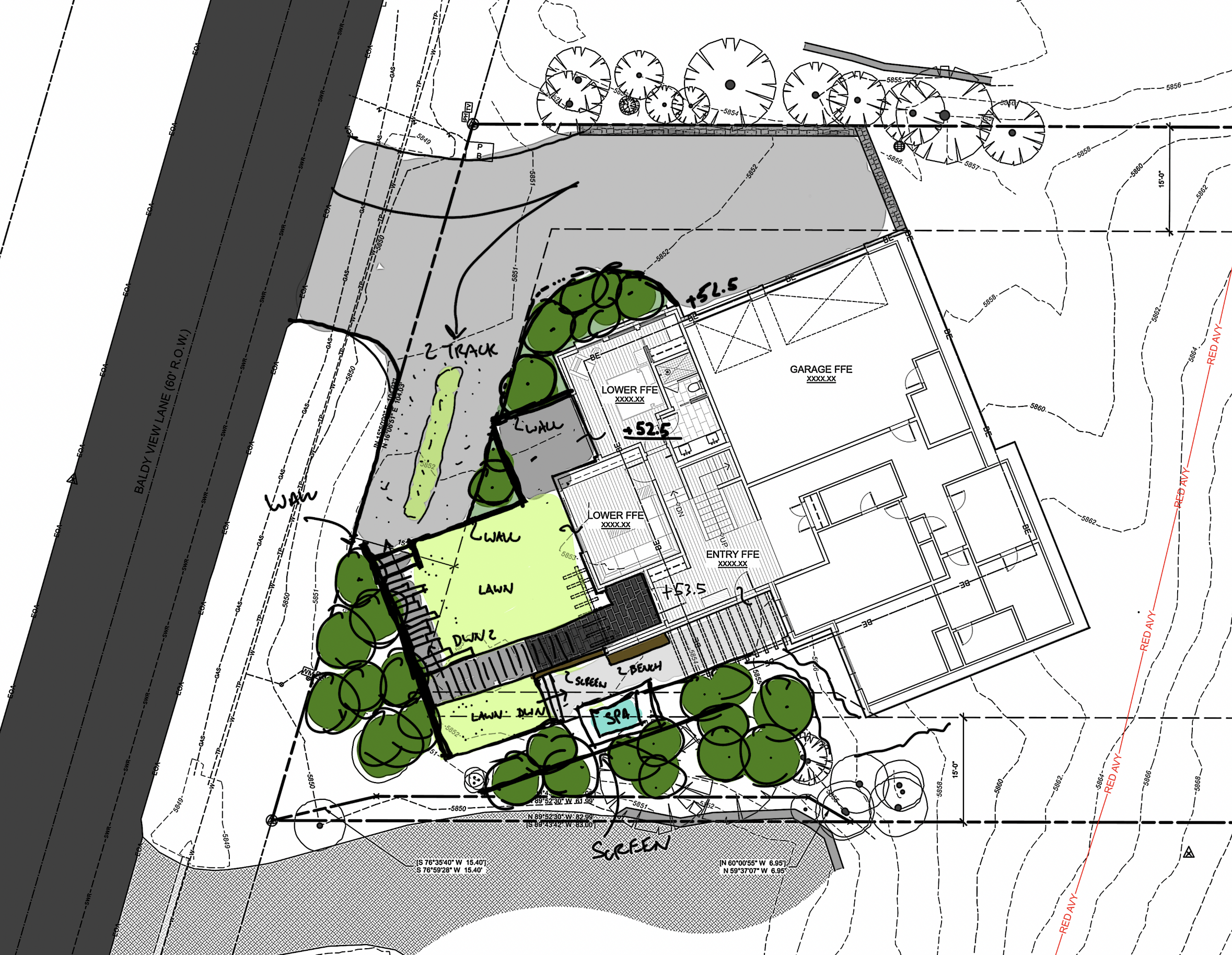 render landscape plan with plants that are native to sun valley idaho sketch line work with realistic textures remove text keep existing line work and locations