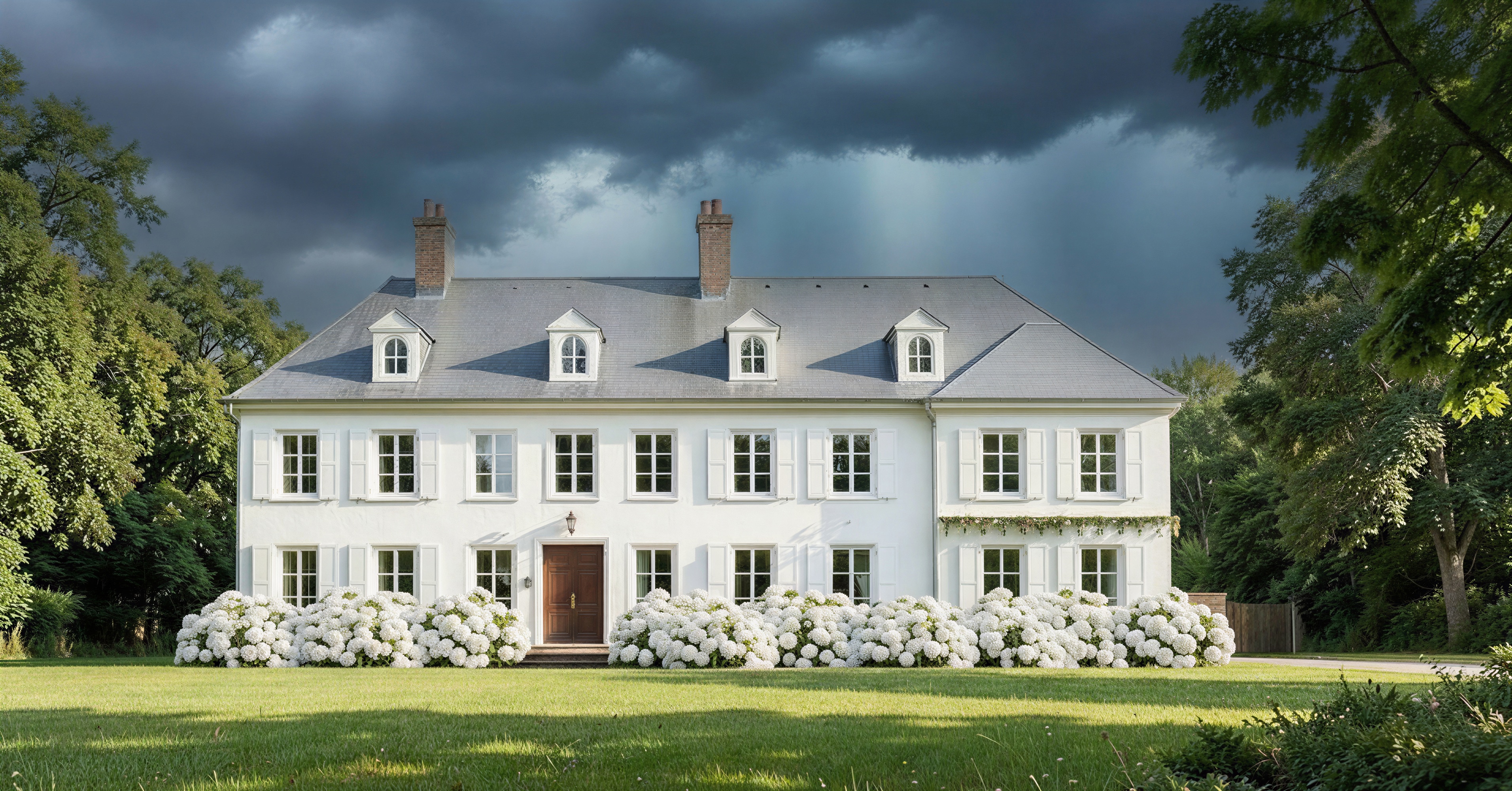 put ivy climbing around the front door and hanging from the trellis on the right