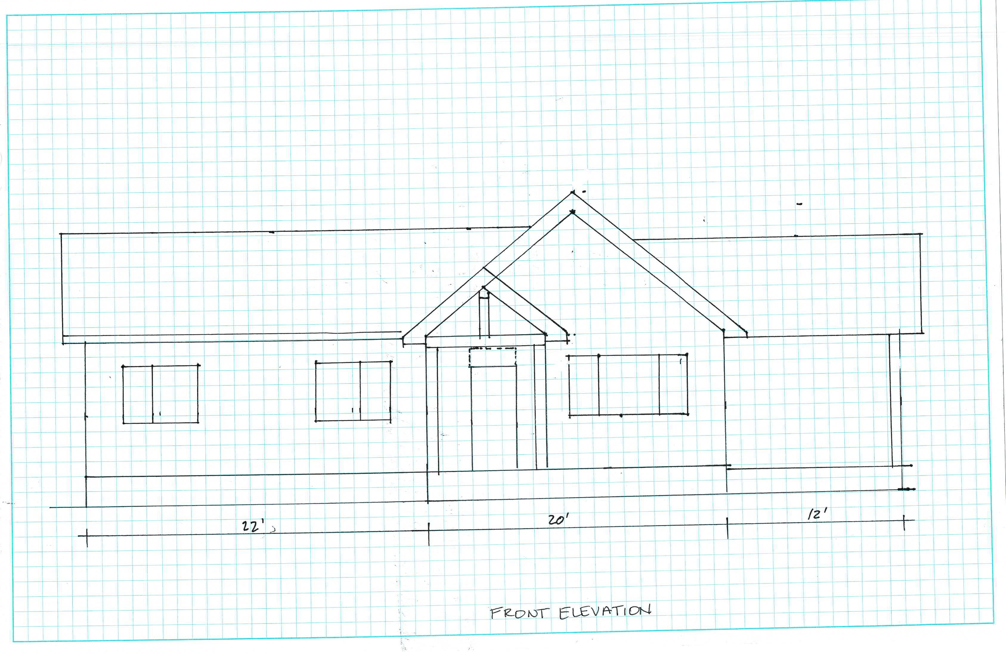 create an image of the elevation from the front elevation sketch use charcoal color lap siding with black windows