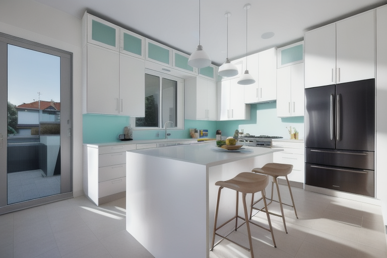 a realistic rendering of a house the lights are on in the interior it is a bright sunny day