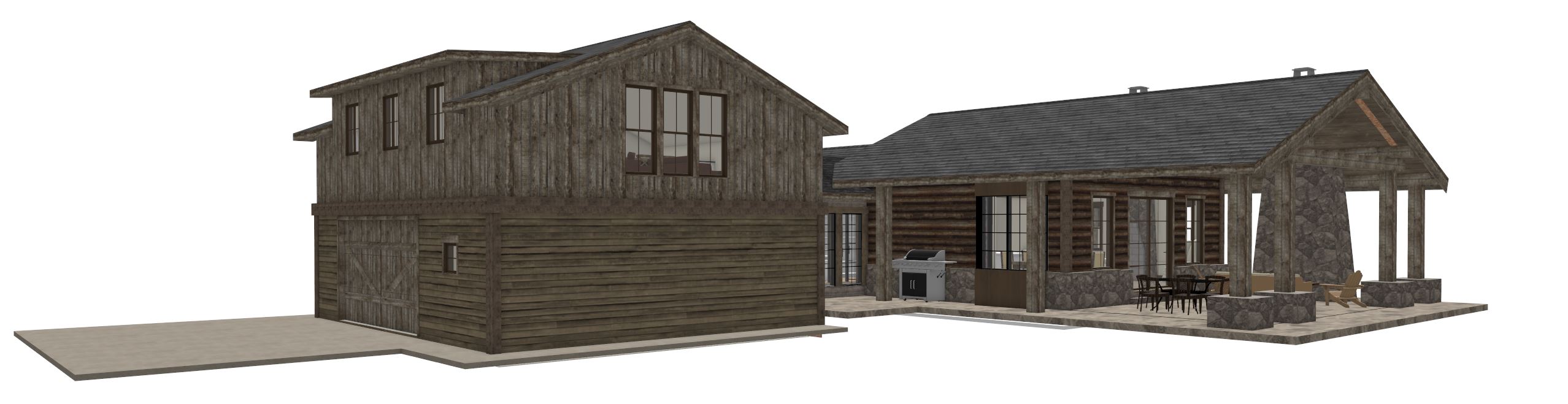grainy watercolor render of timber frame building with reclaimed wood siding pioneer look like old watercolor in the background extensive watercolor rural and pioneer landscaping surrounding the building
