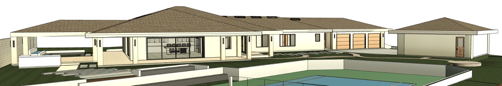 some landscape wiled grass respect concret walls and pathways respect tennis court shown show some trees in the background