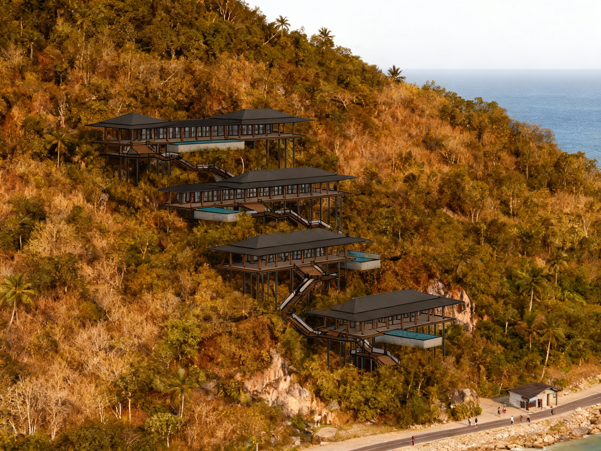 exterior shot sand beige walls and elevations anthracite or dark grey alouminum windows white solid colour backround of the photo architecture