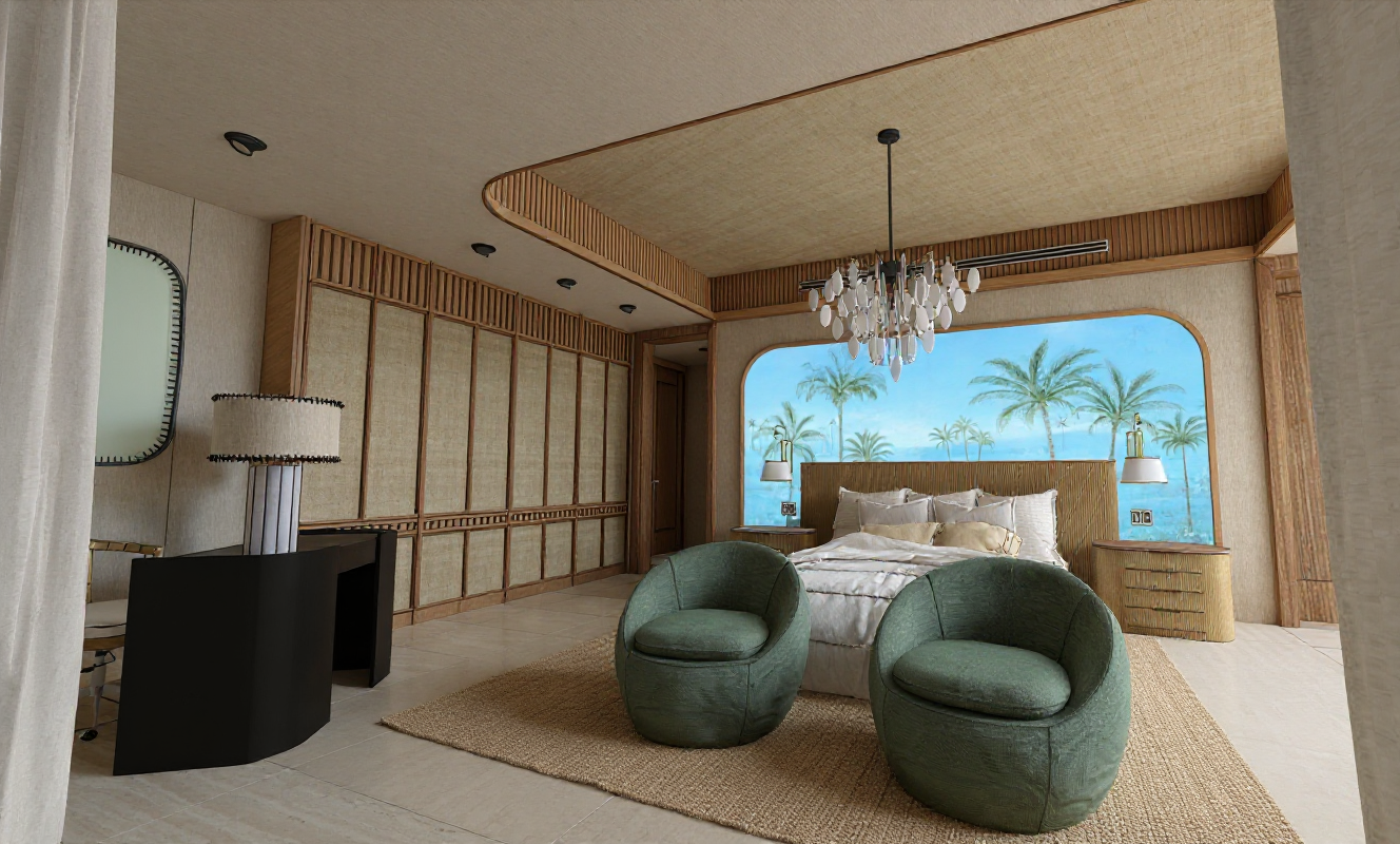 keep true to lightness and colors add light blue to back mural sky make sisal rug with lots of texture