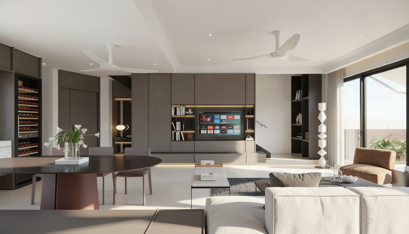 create a luxurious modern bathroom with a serene atmosphere use soft white porcelain tiles for the walls and floor accented with a light gray grout to highlight their clean lines the ceiling should be a soft pastel blue to evoke a sense of tranquility the sink and toilet are sleek and contemporary finished in polished chrome with minimalist designs use a light wood finish for the shelves and cabinetry adding warmth and contrast the window allows natural light to flood in creating bright airy spaces incorporate gentle ambient lighting to enhance the calm and inviting atmosphere with subtle reflections creating a spa like elegance