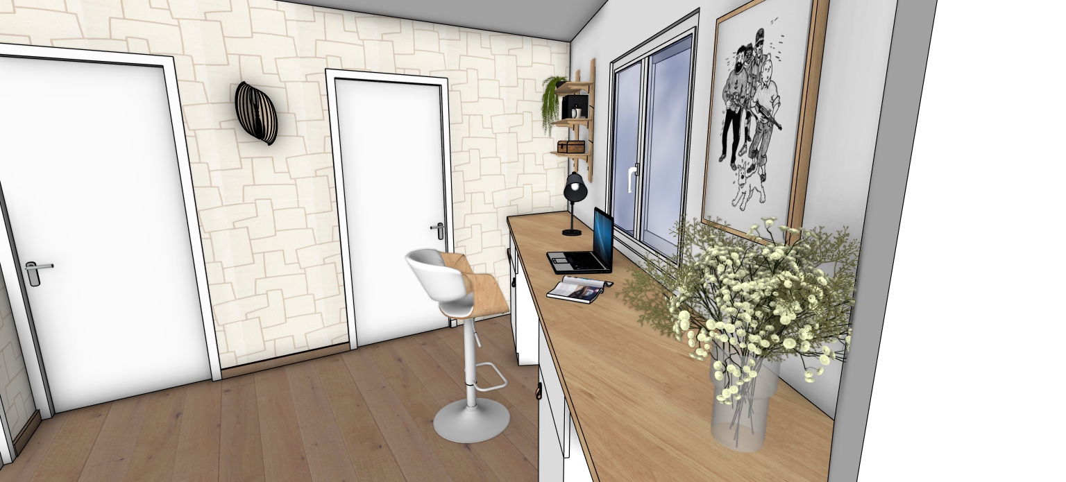 l applique murale en bois est allumee la lumiere naturelle rentre par la fenetre et eclaire doucement la pi ce