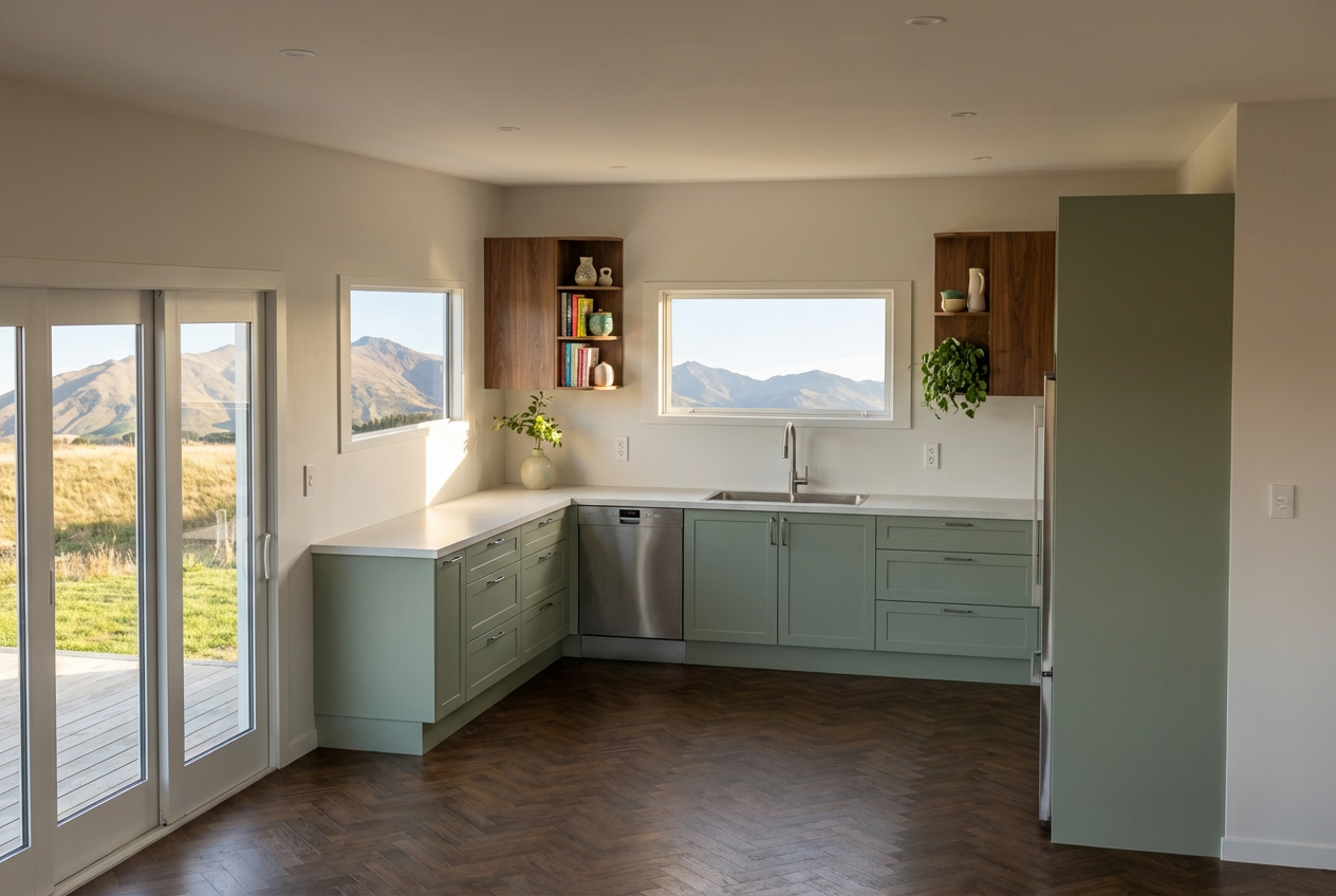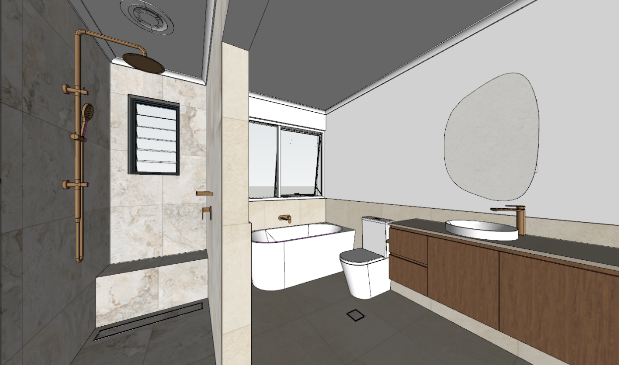 render to create a realistic render with ombre turquoise to section of wall above vanity