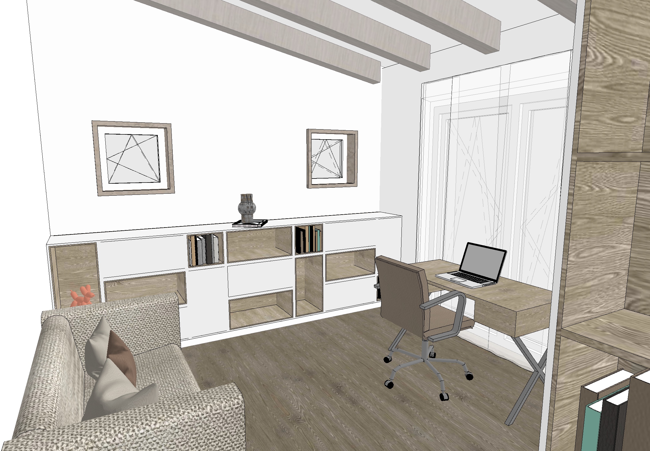 transform the provided home office interior image into a high end photorealistic render with a warm golden hour atmosphere soft glowing highlights and a relaxed upscale coastal energy while keeping the entire scene exactly as it is preserve exactly all proportions desk shape seating ceiling curves wall finishes yellow curtains materials and spatial layout do not move or alter any objects geometry textures colors or furniture positions everything must remain in its current location material appearance enhancements all chairs remain exactly in the same locations and proportions but their materials should read realistically the desk chair should appear upholstered in soft reddish brown leather with a subtle natural sheen tactile cushioned texture and realistic wear any guest or lounge chairs should appear in the same reddish brown tone but upholstered in soft velour with a matte plush surface and gentle directional nap frames shapes and positions unchanged desk surfaces add tasteful realistic personal touches appropriate for a single household a laptop an elegant notebook with pen a coffee cup a crystal water glass a small decorative tray a refined fruit bowl or pastries and a desk lamp all positioned naturally on existing surfaces without moving any furniture activity occupancy add one or two household members casually using the office sitting at the desk reading or working naturally integrated correctly scaled and unobtrusive no crowding architectural features remain fully visible shelving displays on shelves or display surfaces add books small decorative objects and personal touches arranged evenly and tastefully without changing shelf geometry or spacing shelves should have warm accent lighting to enhance reflections and depth any background wall should read as amber ribbed glass with warm backlighting maintaining exact proportions alignment and geometry lighting mood realism emphasize golden hour warmth soft highlights gentle shadows enhanced color richness and luxurious realism materials should show enhanced tactile realism rich wood grain polished marble subtle brass highlights fabric texture on chairs and clear reflections on glass or metallic surfaces keep all furniture objects and spatial relationships exactly as originally designed goal create a personal photorealistic home office that feels cozy refined and lived in with golden hour warmth and subtle coastal luxury without altering any geometry layout or core design elements architecture