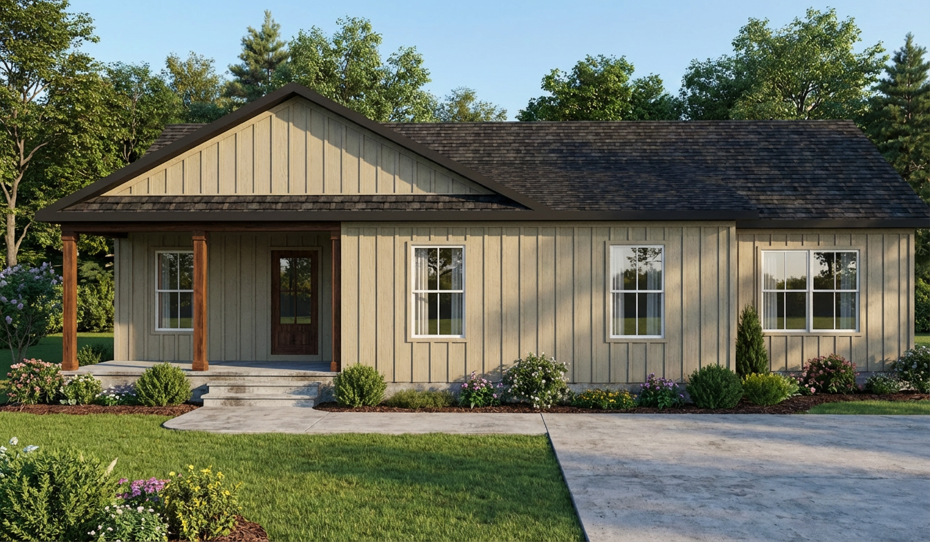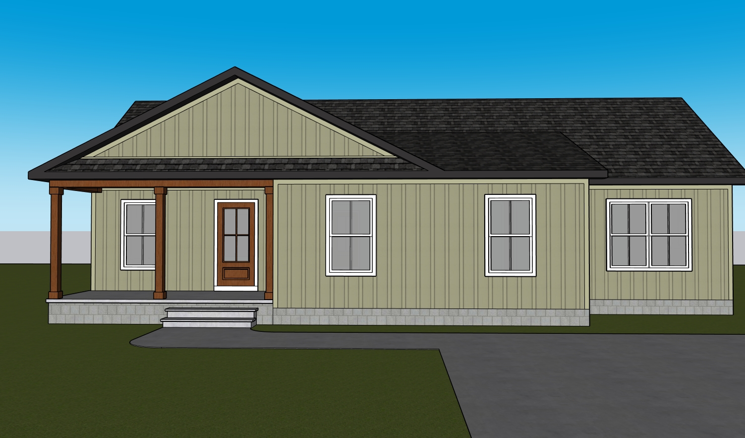add trees is background add landscaping make realistic make siding a grey color