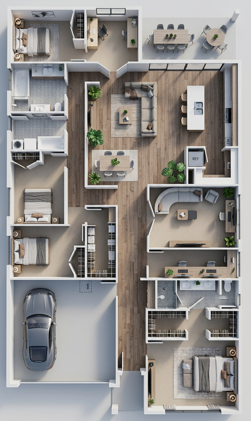 add a minimalist plaster celling on the top with lightings and cove lightings