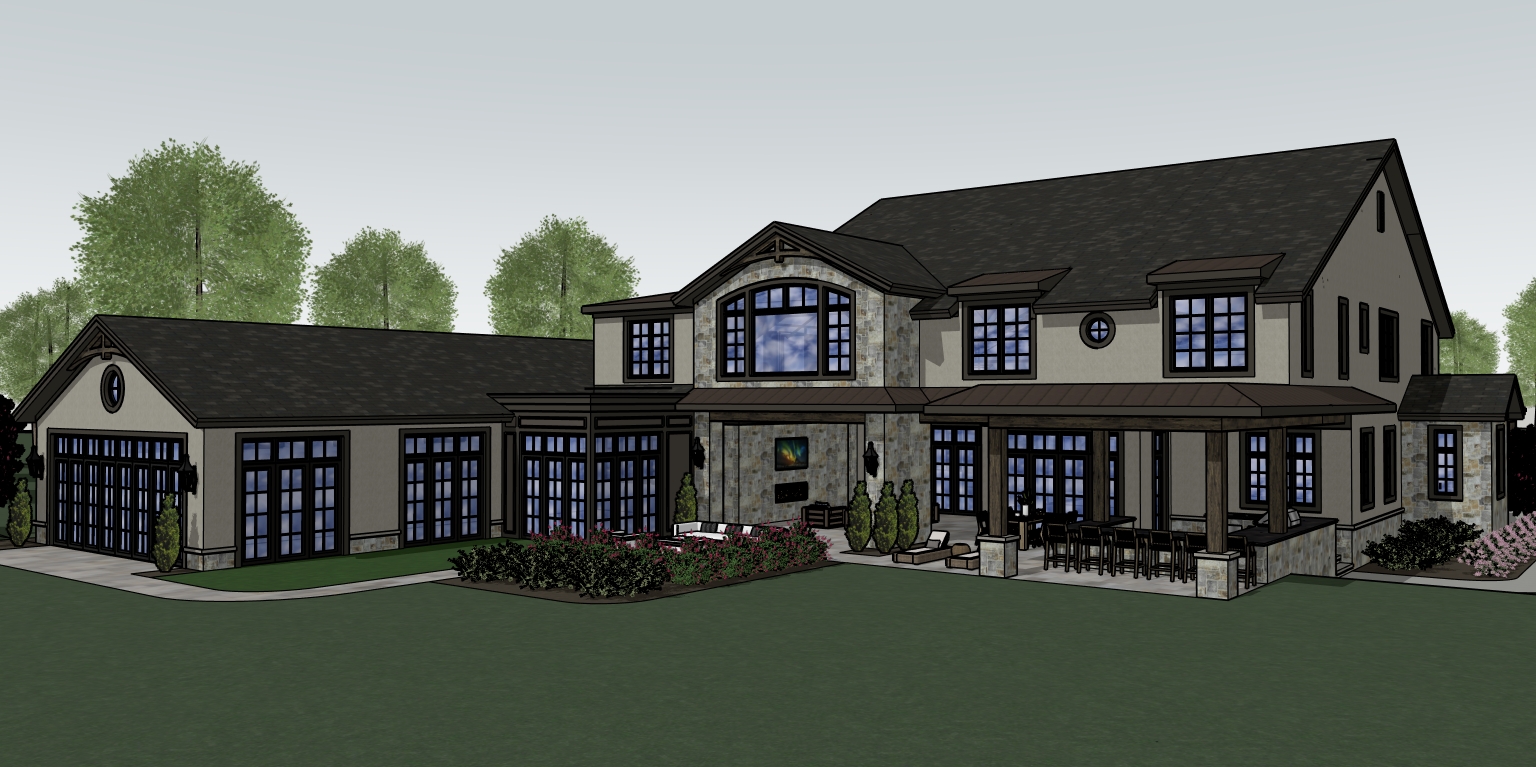 partly cloudy sky deciduous trees in background add gutters and downspouts