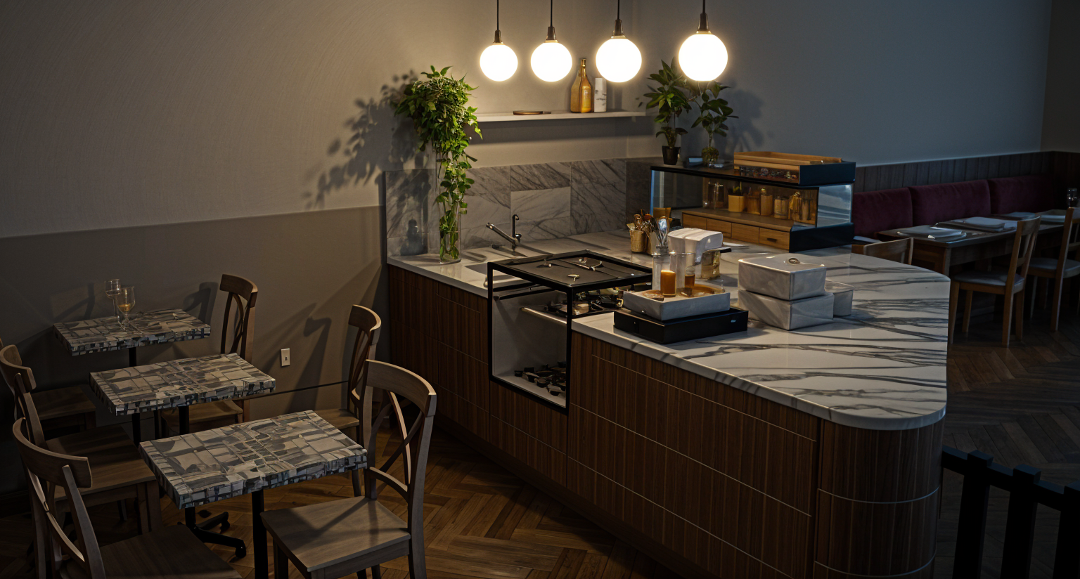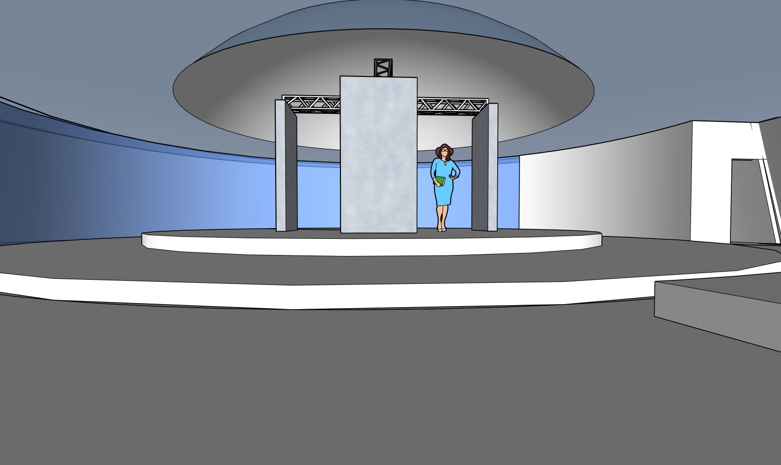 make this as an exhibition space for furniture with steps as the 3d model and a dome